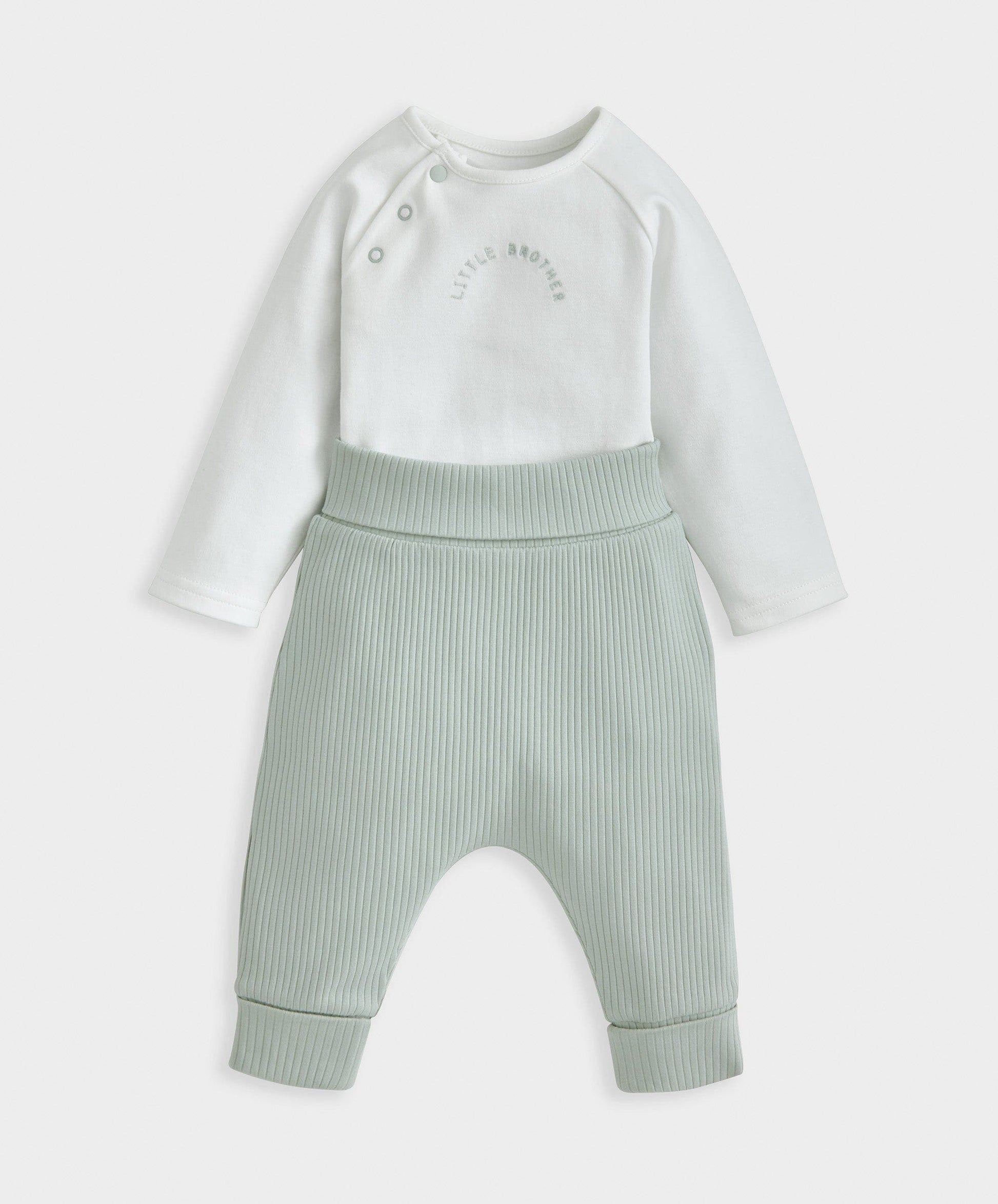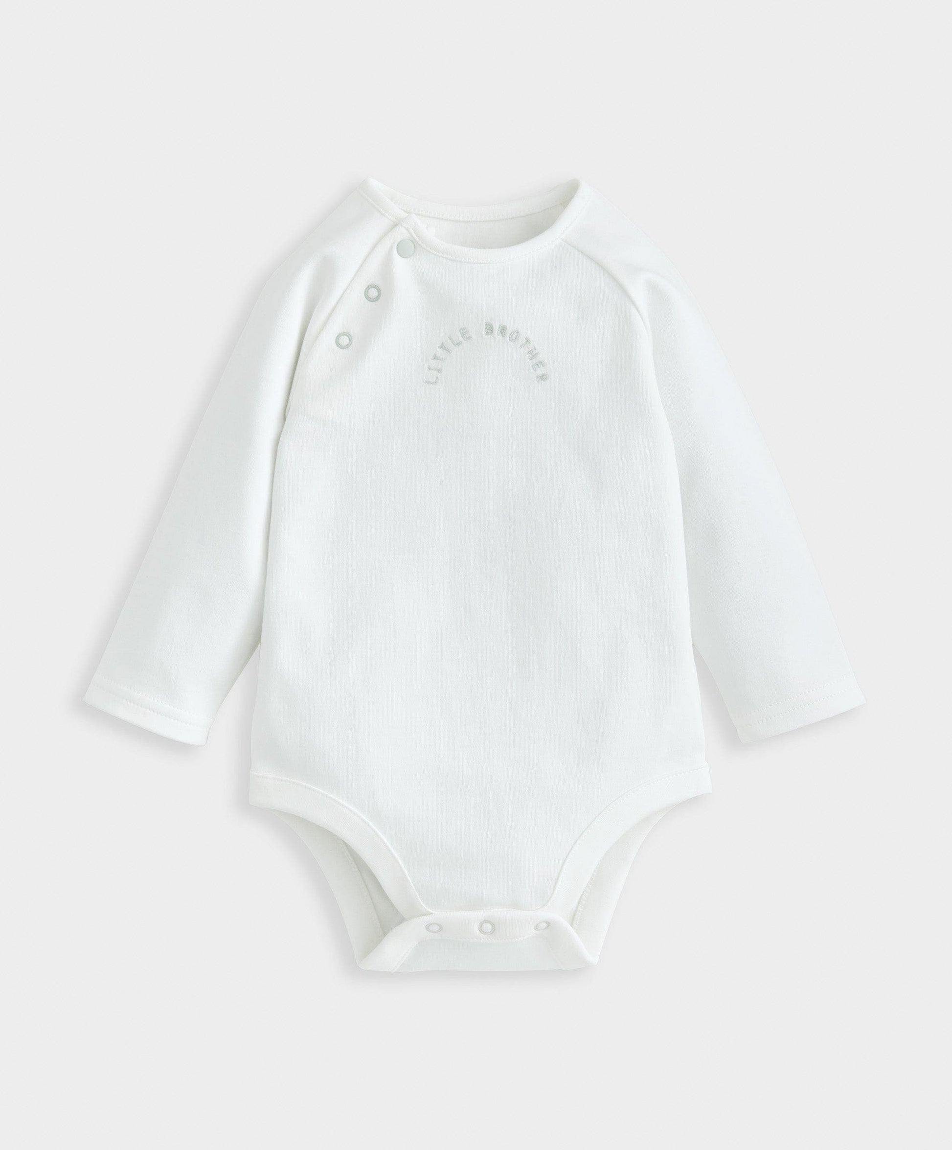 - A 100% cotton bodysuit with raglan sleeves and cute 'Little Brother' embroidery