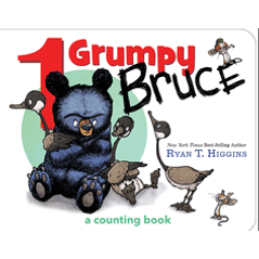 Long-suffering Bruce once again contends with an increasingly crowded household, this time in an original board book where young ones can count the never-ending party guests. Full of fun characters and humor, 1 Grumpy Bruce is just right for our littlest readers.