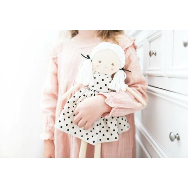 Frankie is a sweet 42cm doll made with a removable cotton dress. She featured fabric hair and a beautiful embroidered face. Frankie is part of our Dress Up Doll range so our large dolls dresses will fit her perfectly.