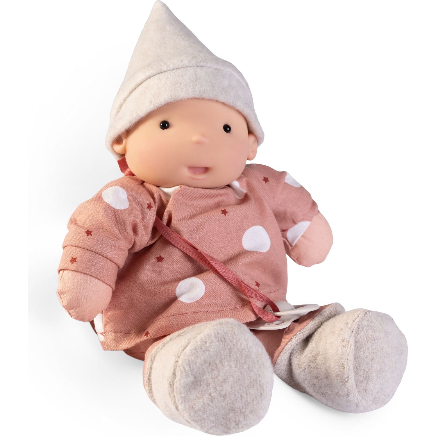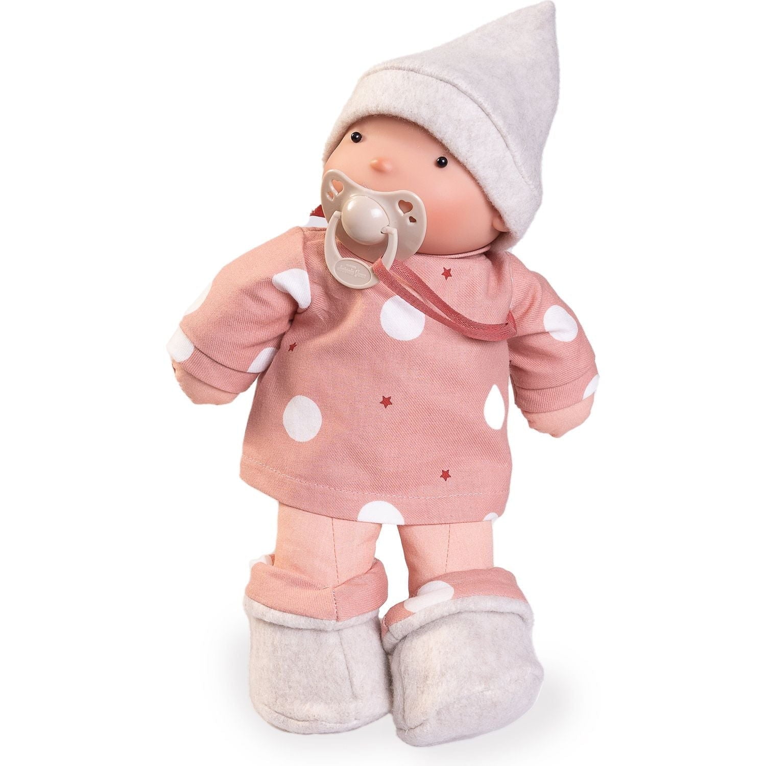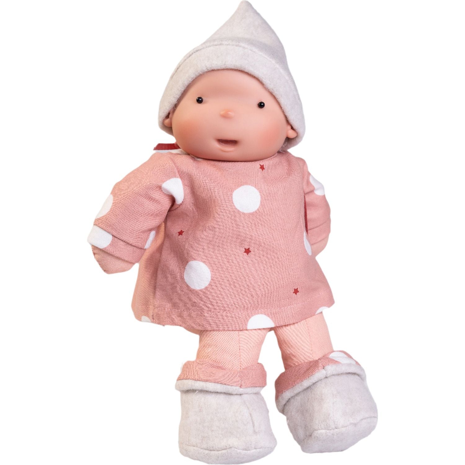 It is the perfect doll to accompany the little ones in the house on their first adventures safely and with all the quality guarantees, developed by Muñecas Antonio Juan. His body and limbs are made with organic fabrics, and a sweet little face made of 100% silicone, to stimulate his development and imagination. As part of our commitment to children, in each of our collections we try to make small changes that contribute to a better and more sustainable world. That is why we promote the use of recycled materials of natural origin in each of our dolls. His clothes are made of organic cotton and recycled threads, the pacifier is made of bio-organic materials with natural pigments and is filled with soft PET fiber from recycled plastic bottles. Orange Ariel wears a pretty dress and a hat that makes her a very funny face. Recommended for boys and girls from 10 months.
