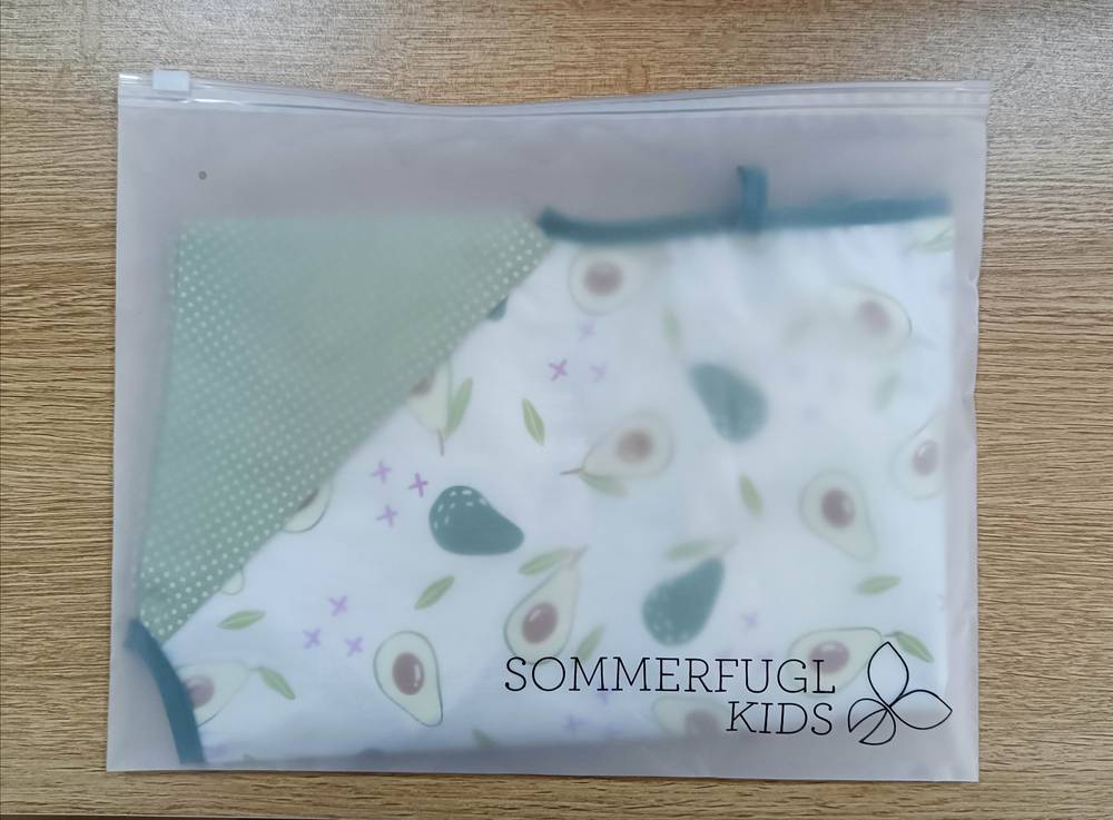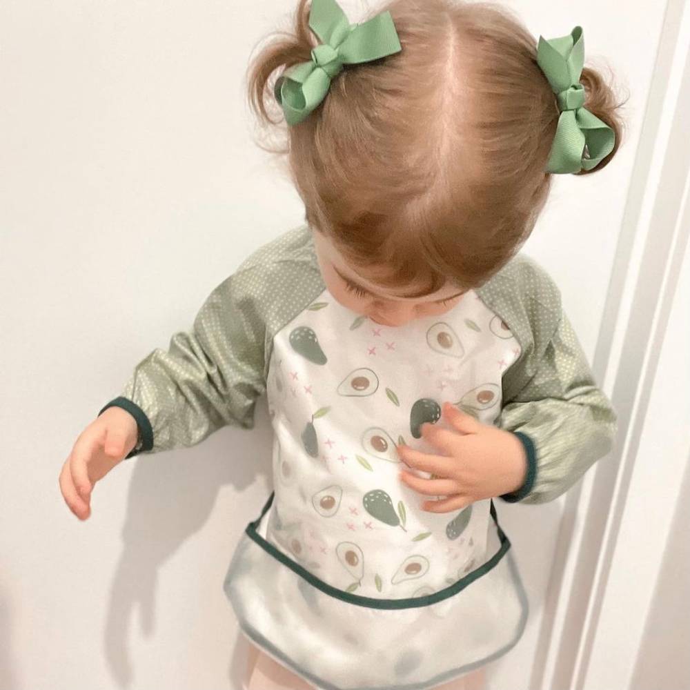 Celebrate the avocado craze with our avocados smock. The waterproof mid-section, reversible pouch, and adorable avocado print ensure your little one stays mess-free and trendy during mealtime.