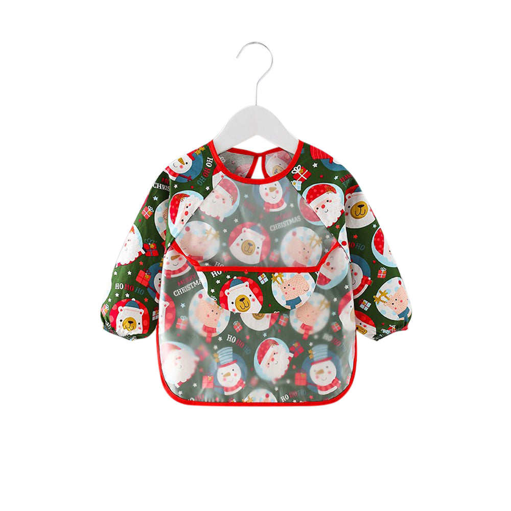 Baby Long Sleeve Apron Smock Bib Christmas Santa Green