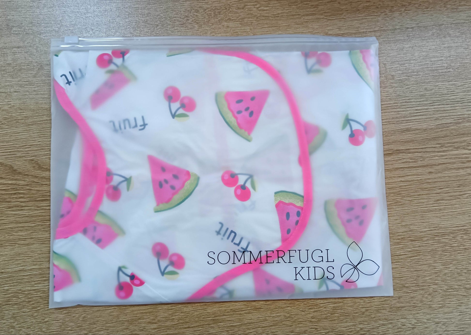 Slice into mealtime fun with our watermlon smock. The waterproof mid-section, reversible pouch, and refreshing watermelon print make this smock a delightful and practical choice for your little one.