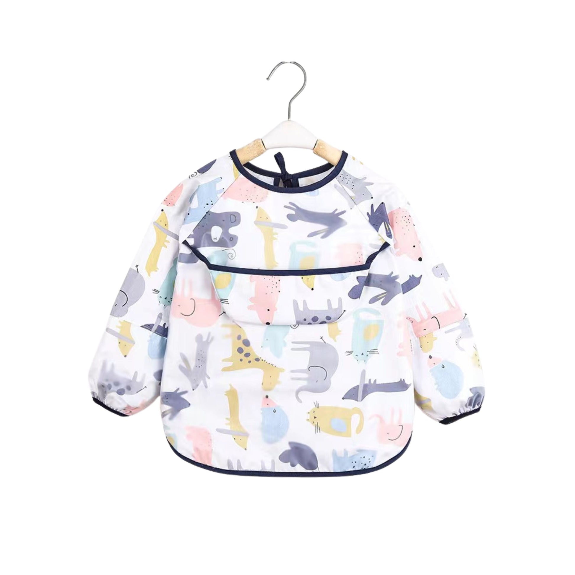 Unleash wild fun with our wild whiskers smock. The waterproof mid-section, reversible pouch, and adorable whiskered print make this smock a playful and practical choice for your little explorer.