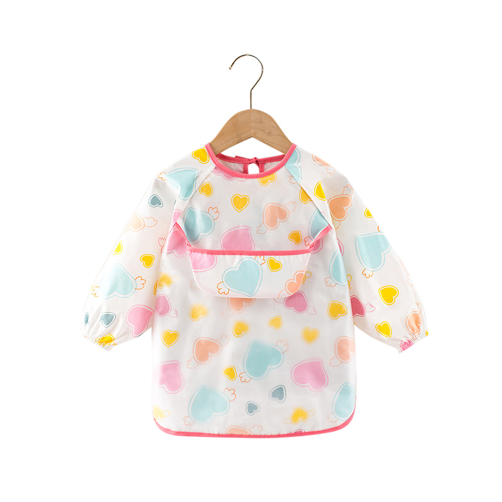 Spread love at mealtime with our favorite little love heart smock. The waterproof mid-section, reversible pouch, and charming heart print make this smock a delightful and practical choice for your little one.
