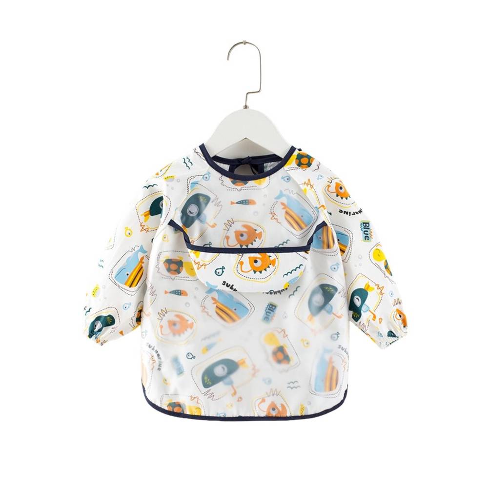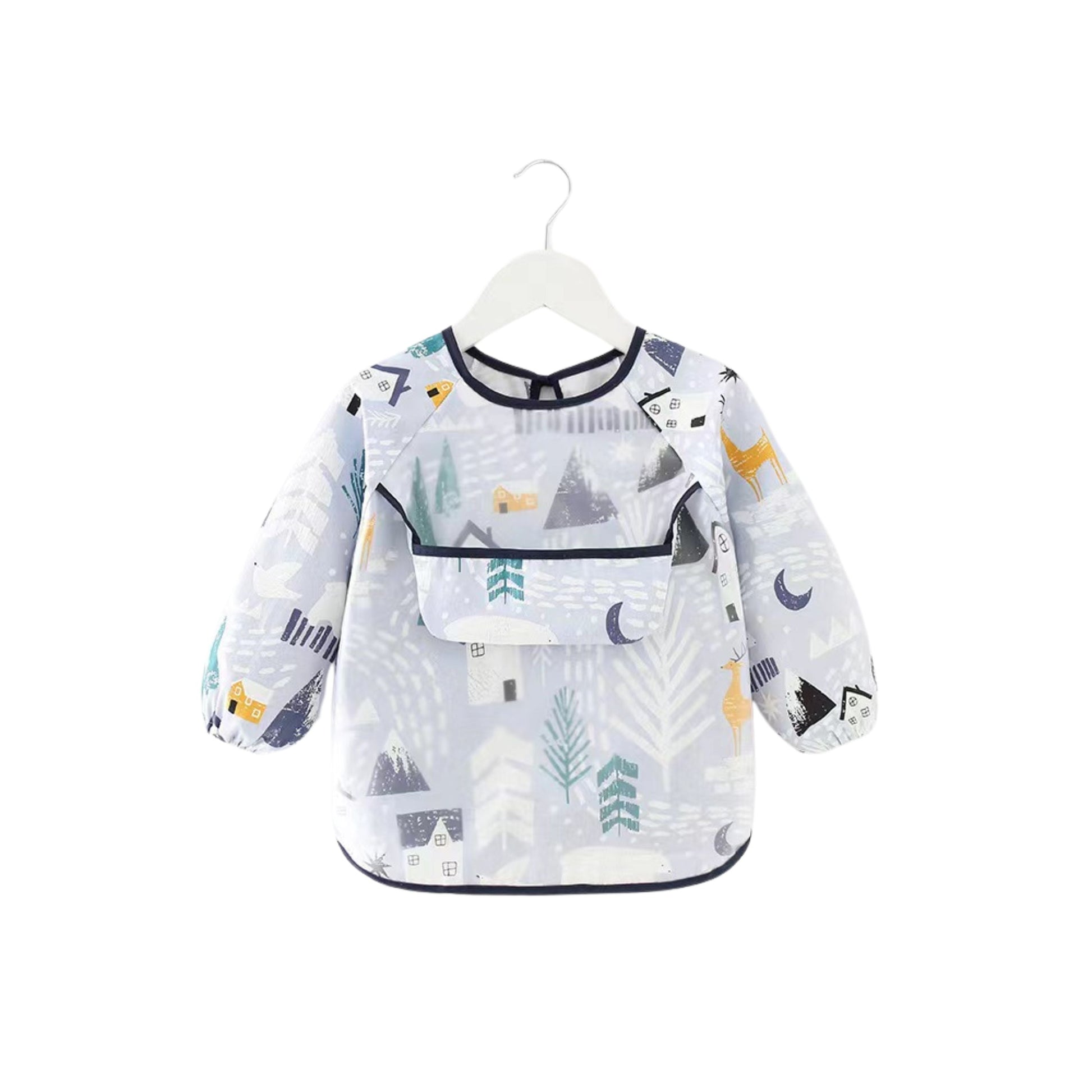 Drift into mealtime with our sweet dreams smock. The waterproof mid-section, reversible pouch, and charming moon and stars print make mealtime a dreamy delight for your little one.