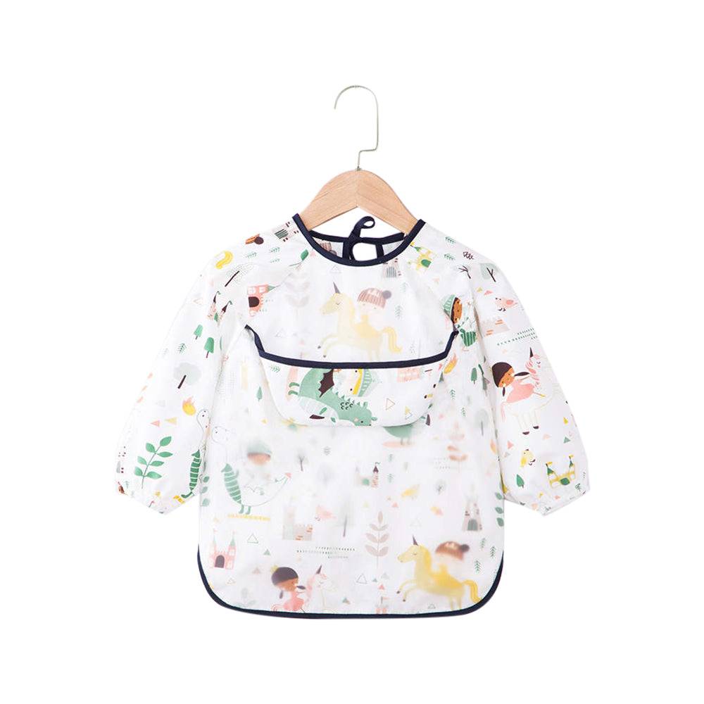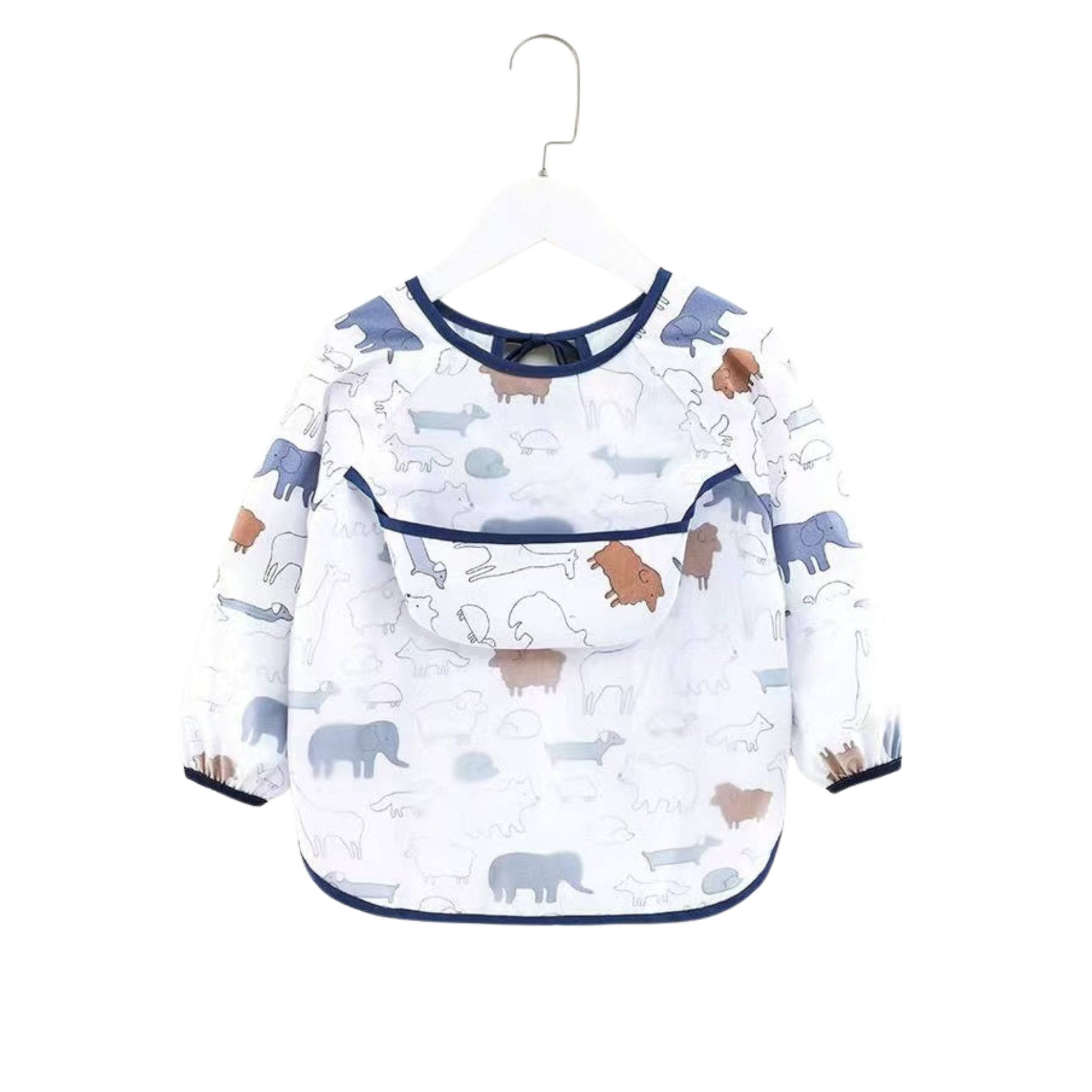 Step into a whimsical woodland with our charming smock. The waterproof mid-section, reversible pouch, and enchanting woodland print make mealtime a delight for your little one.