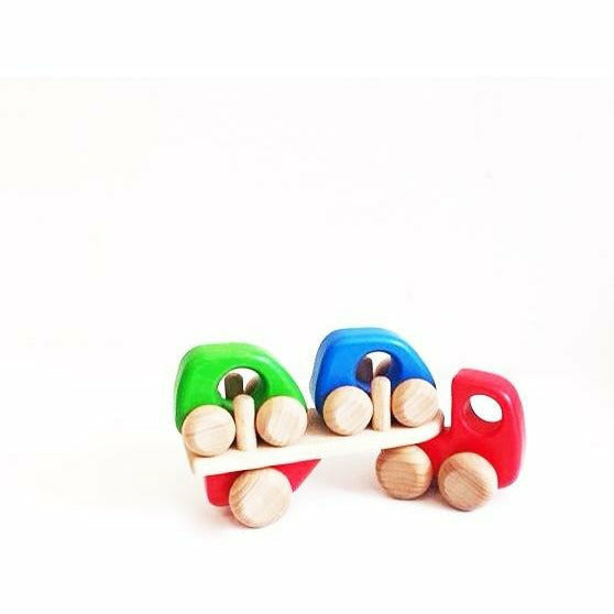 Your little one will love loading and unloading their mini cars and transporting them around the nursery! The adorable little black cab carries a removable flatbed that holds two Mini Cars (one blue, one green). Expertly crafted from eco-certified solid hardwood from renewable sources and painted with non-toxic child-safe paints.