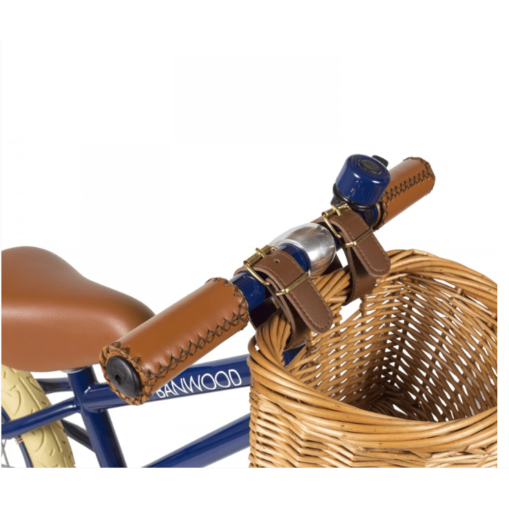 The front wicker basket is made of rattan and is perfect for bringing out teddy for a ride.