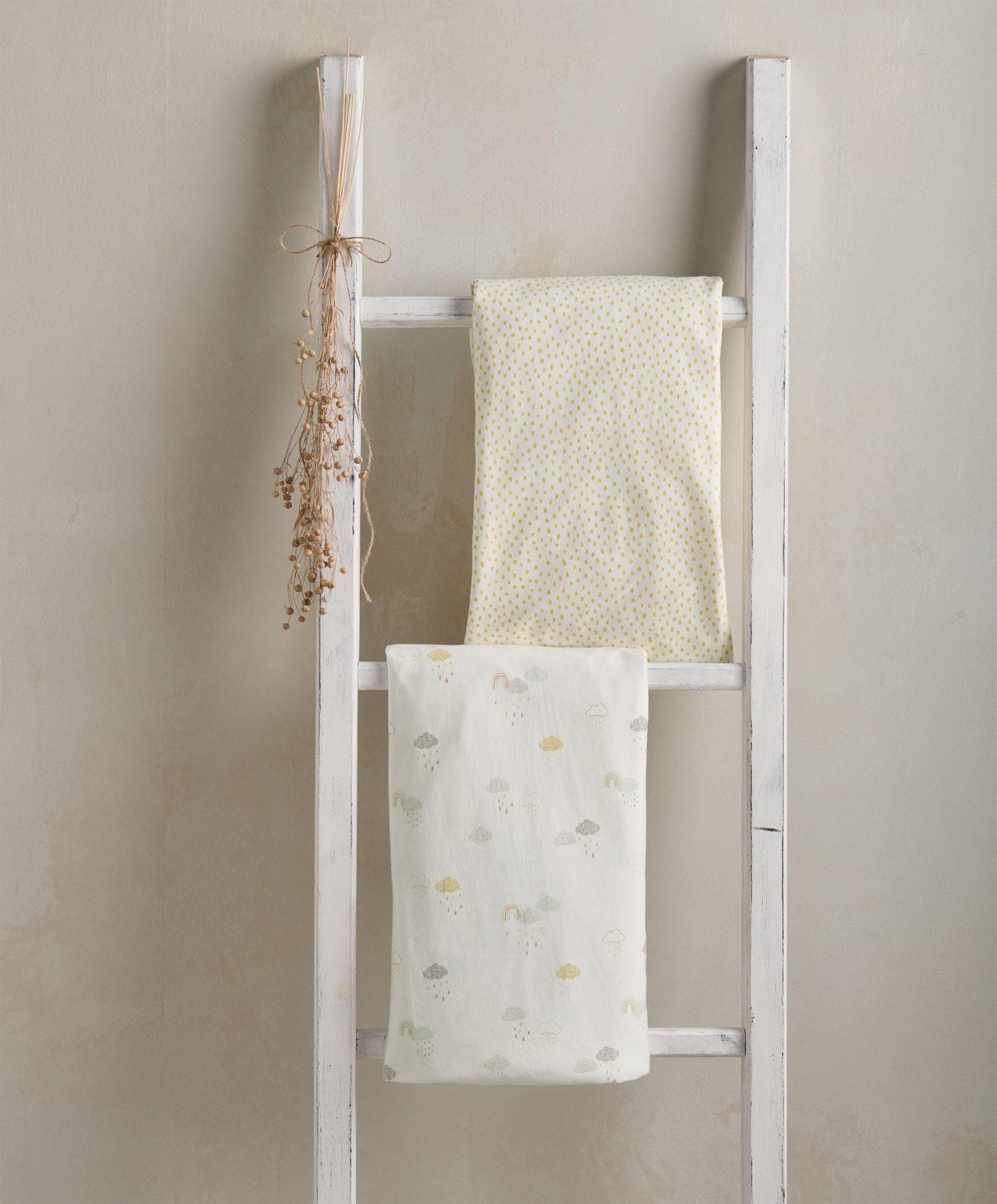 2-pack of super-soft fitted sheets, in soft cloud print and plain grey patterns. Made from 100% soft cotton. Elasticated fit designed to fit most cotbed mattresses. Machine washable.