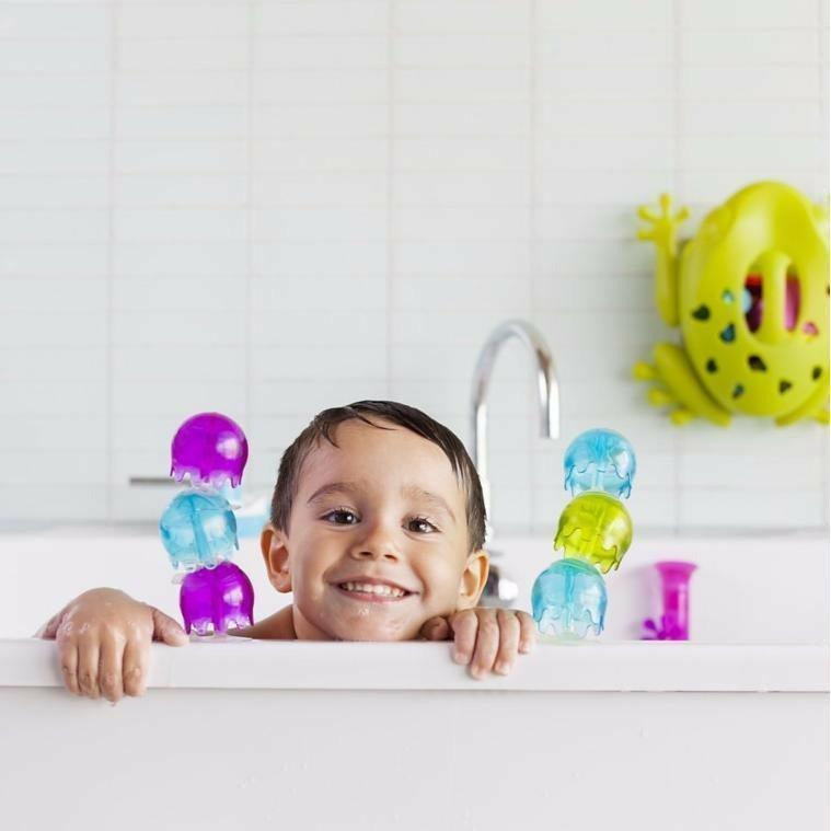 Keep your little one entertained with these adorable stackable jellyfish stickies! The tentacles suction directly to the wall, tub, or even each other to create cool forms and structures. Pack includes 9 jellyfish.