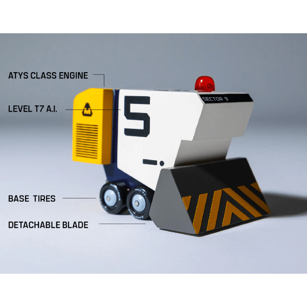 The bulldozer of the Sector 9 crew of vehicles! Dozzie (like 'dozer' in bulldozer!) has a magnetically detachable bulldozer blade and is ready to take on the biggest challenges.