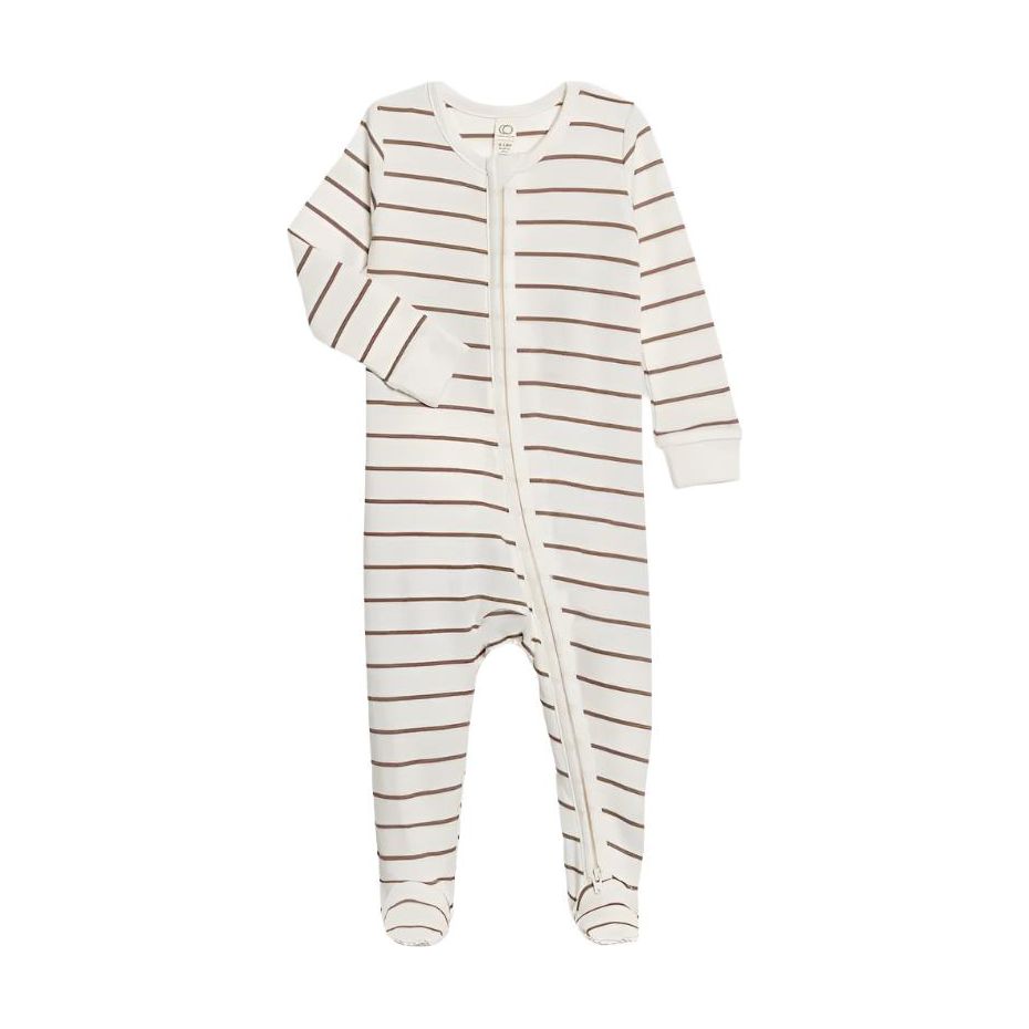 Colored Organics Peyton Footed Sleeper- Kade Stripe / Taupe