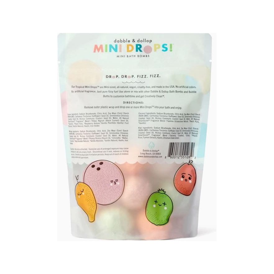 Like all Dabble & Dollop bath bombs, our Tropical scented bath bombs are 100% Natural and free from artificial dyes, scents, and additives. Perfectly Sized at 12 bath bombs per pouch, they are made to combine with our other seven scents to personalize your experience. Sensitive skin-friendly with gentle moisturizing ingredients that leave skin radiant. And we are clean, USA Made, Vegan, gluten-free, cruelty-free, and crafted in California.