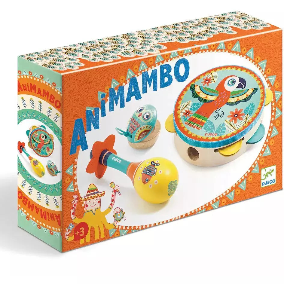 Contents: a set of 3 instruments, tambourine (wood, plastic, metal), maraca (wood, felt), and castanet (wood, elastic).