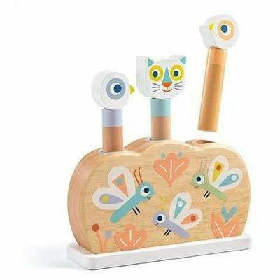 The Djeco Baby Popi Pop-Up Puzzle is an instant favorite! Simply push down on the wooden pegs and watch them pop up. Push too hard, and the pieces will fly out of the wooden base. The Baby Popi Pop-Up Puzzle toy encourages the fine motor skill of pushing just the right amount. Additionally, the animal pegs can be matched in their corresponding colors to teach color recognition. Your little one is sure to keep coming back for more!