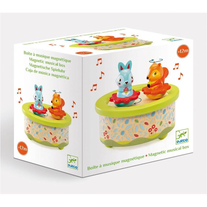 Contents: a magnetic wooden music box and 2 plastic figurines.