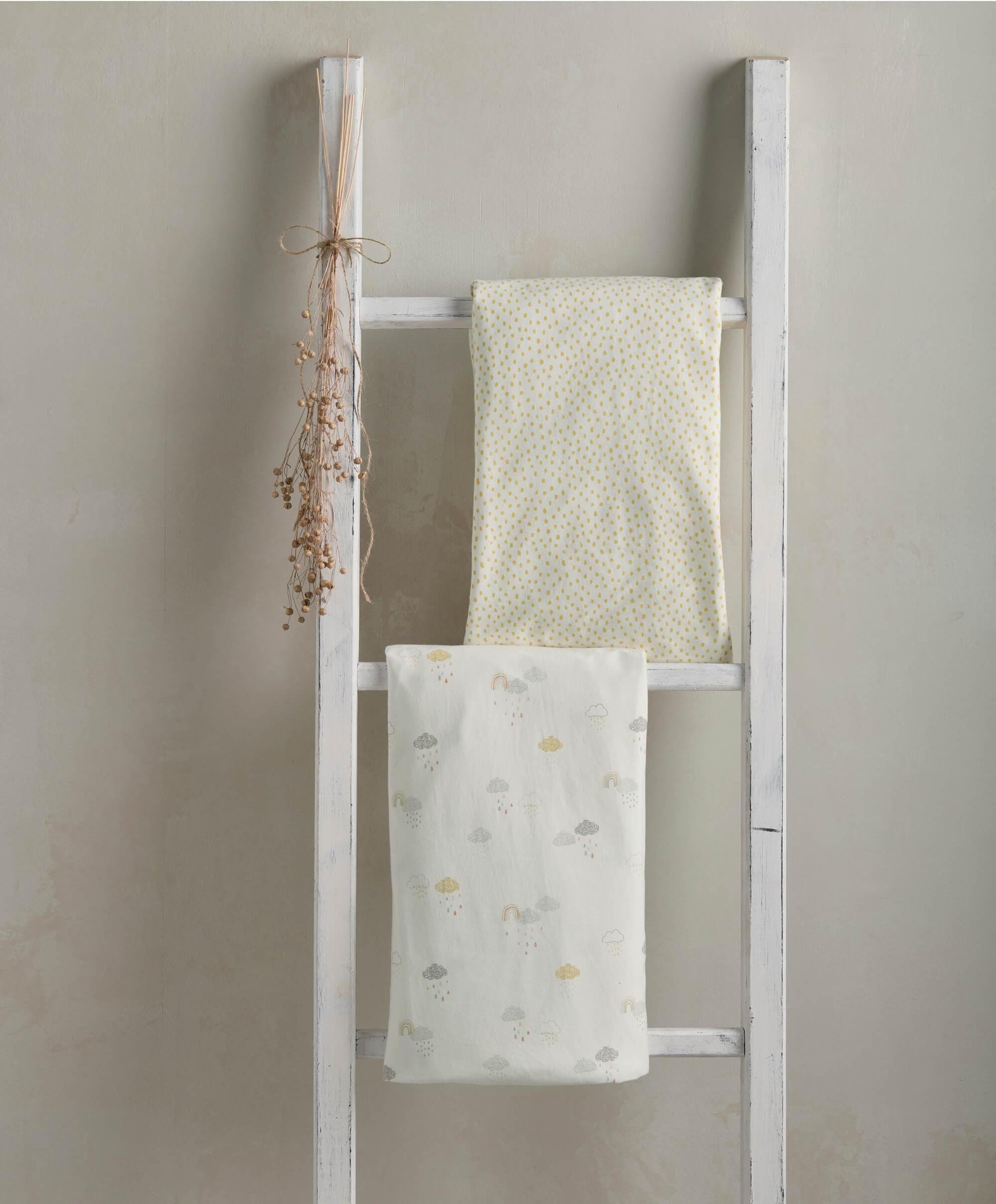 2-pack of super-soft fitted sheets, in soft cloud print and plain grey patterns. Made from 100% soft cotton. Elasticated fit designed to fit most cotbed mattresses. Machine washable.