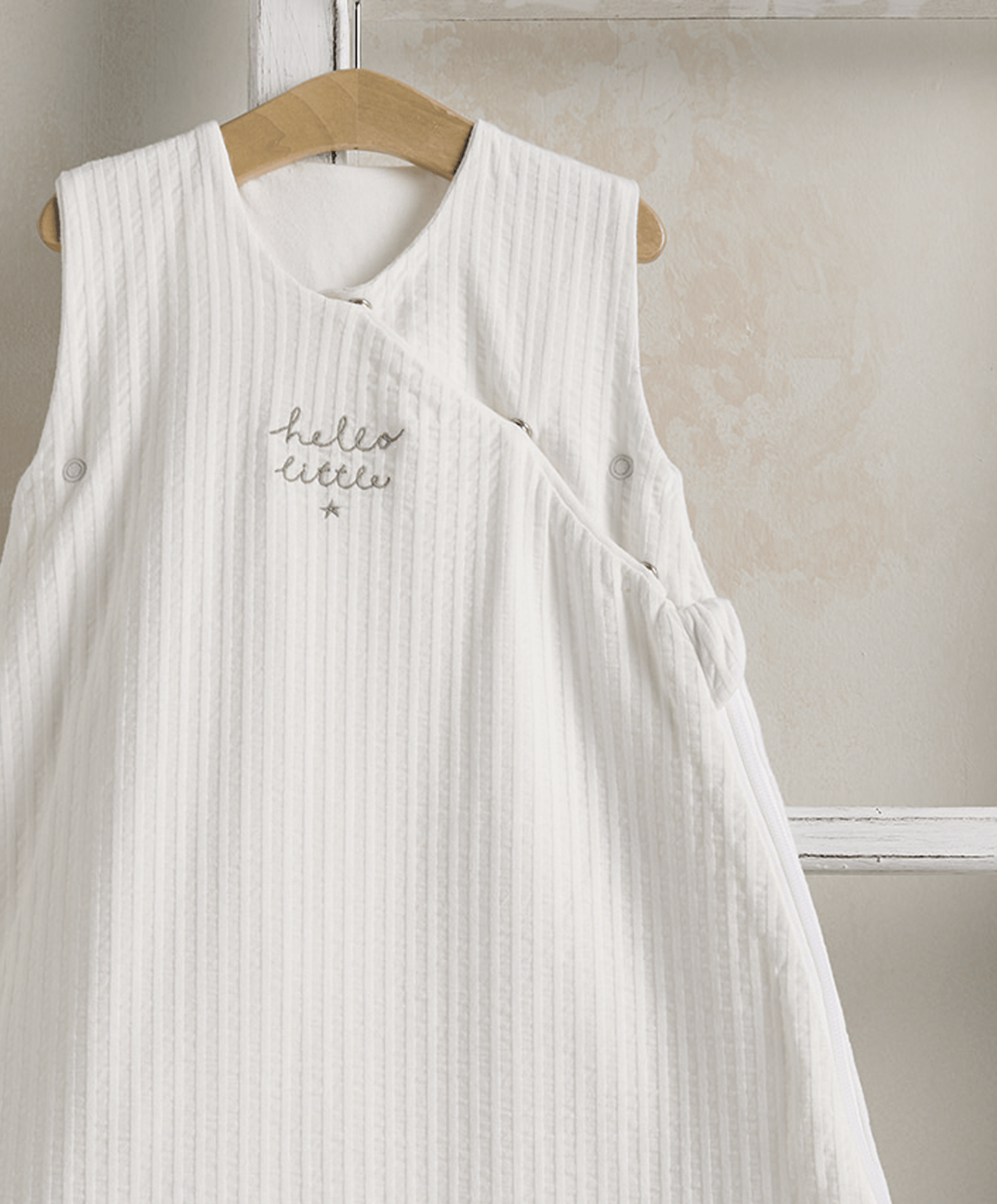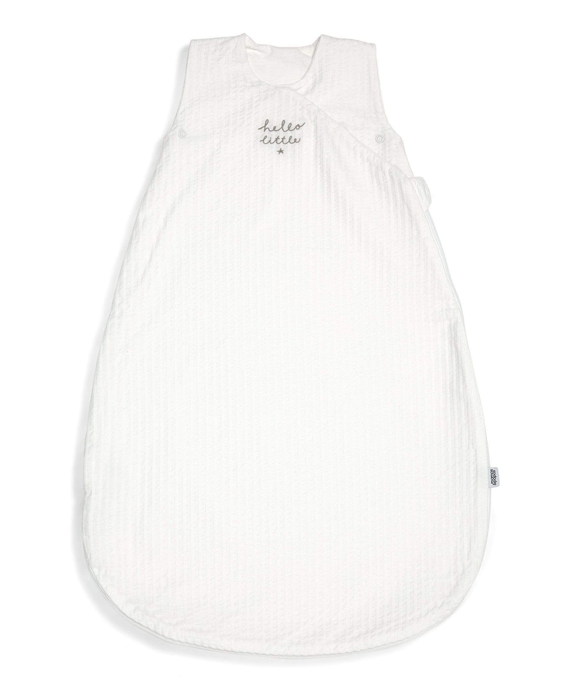 1.0 Tog dreampod, suitable from birth for 0-6 months old. Plush textured jersey stripes. Finished with embroidered grey slogan. Zip bottom allows for easy changing at night. Popper fastening under arms lets you adjust for a perfect fit.