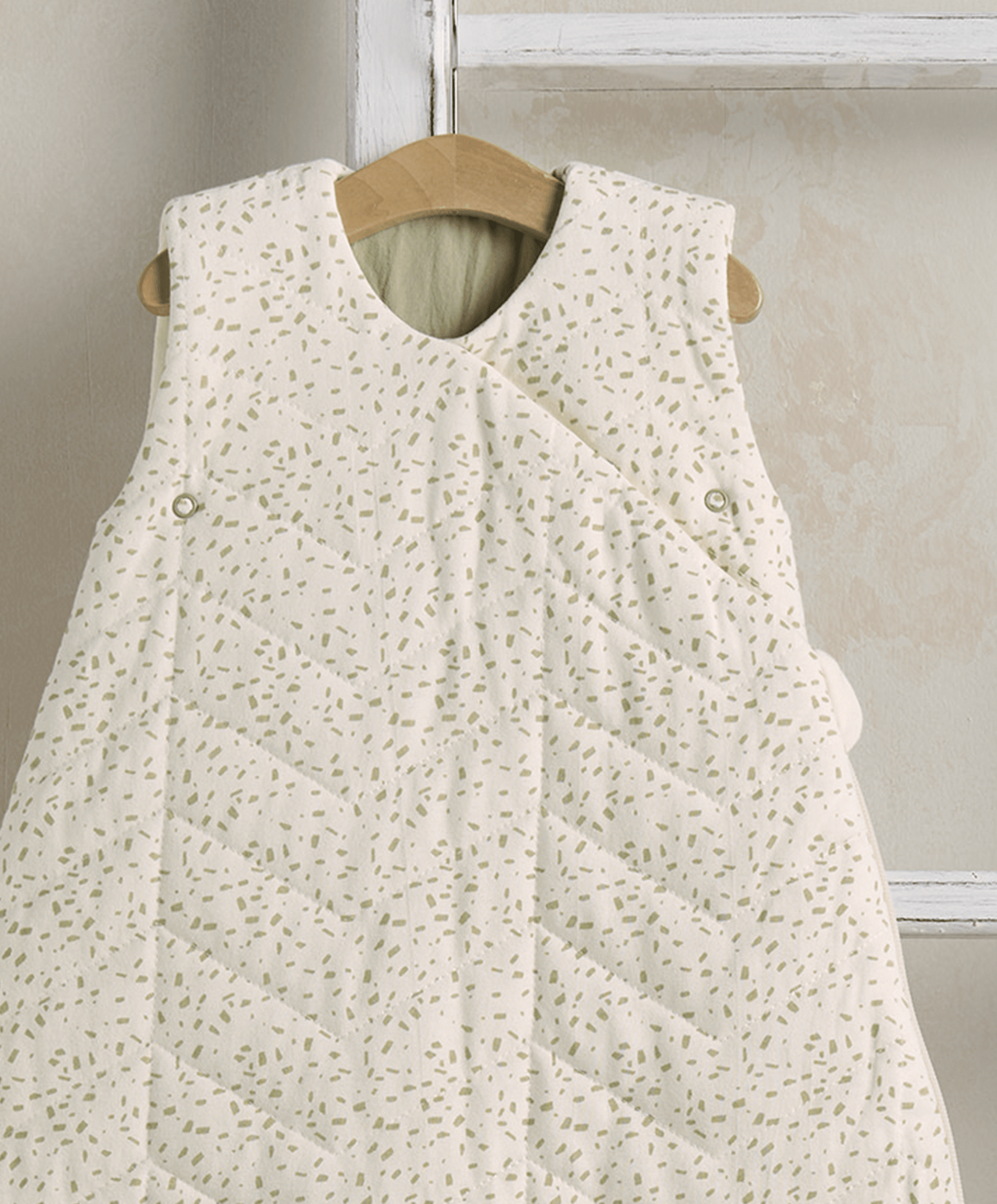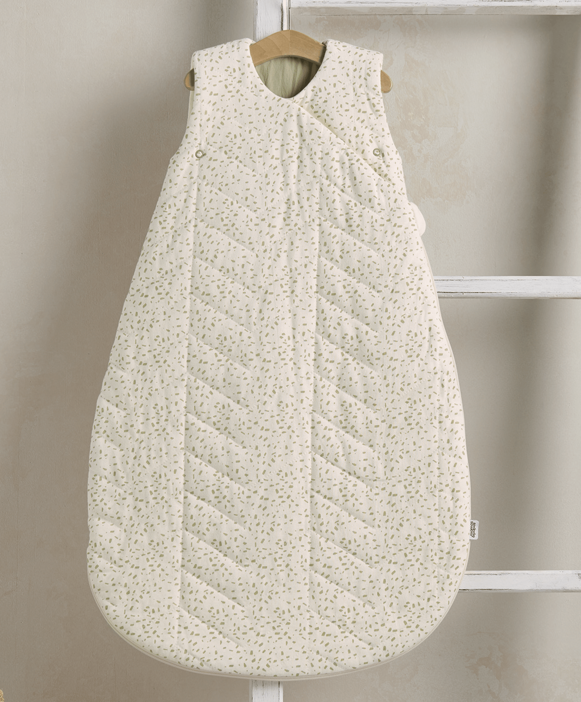 Unisex 2.5 tog dreampod suitable for 0-6 months. Crafted from supersoft gentle cotton. With chevron quilted detailing, distinctive shaped neckline, in iconic safari-inspired speckle print. Features easy-access zip and popper opening, for ease of use and nighttime changes.