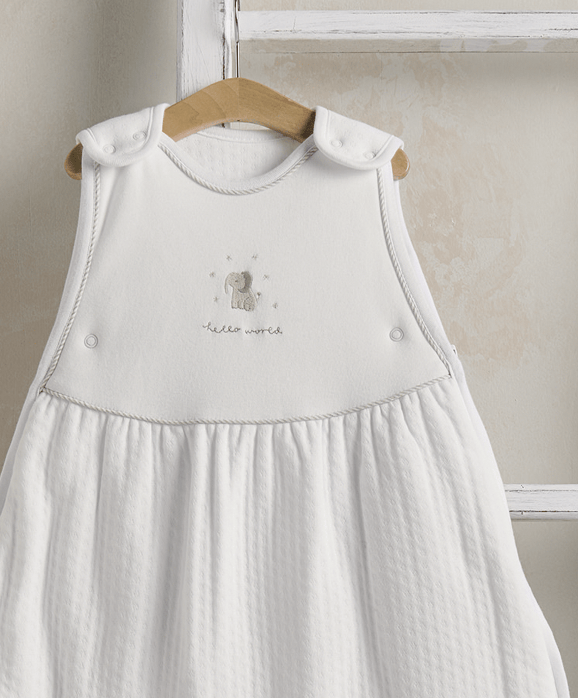 2.5 Tog Dreampod, suitable from birth, for 0-6 months. Made from super soft 2.5 Tog jersey pointelle fabric. With zip opening so you can do quick nappy changes at night, even while they sleep!