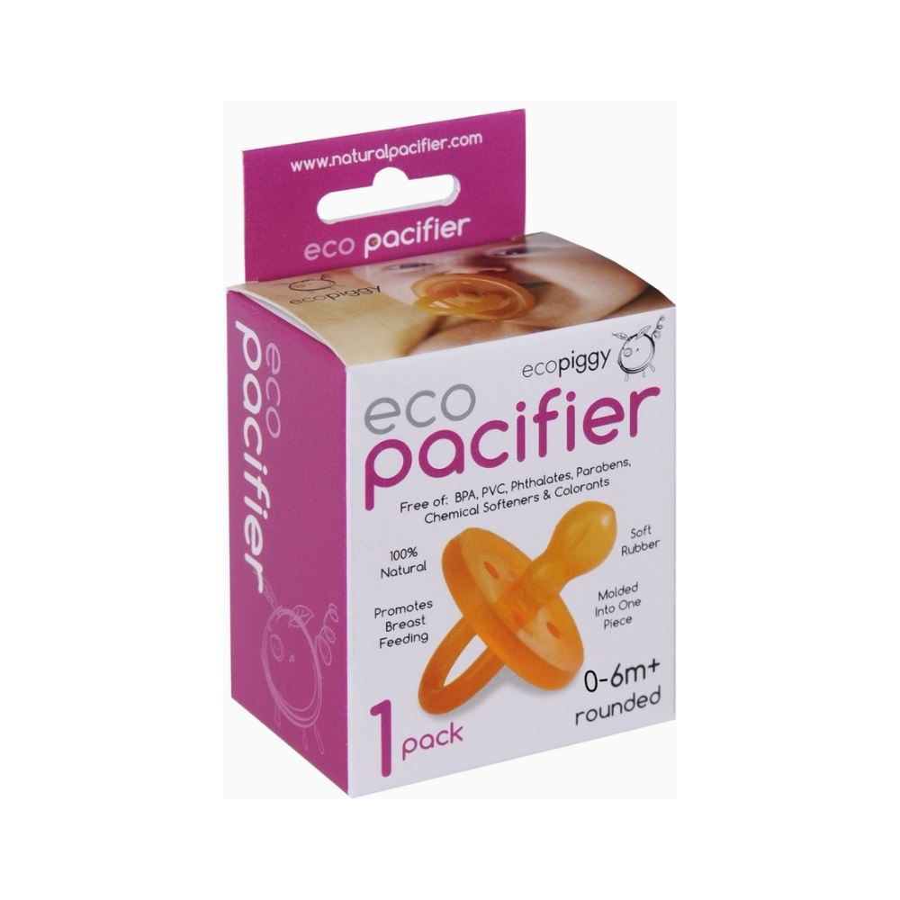 Ecopiggy eco-pacifier is the preferred natural rubber pacifier. Sustainably made from 100% natural rubber, from the tree hevea brasiliensis, eco-pacifier is softer and more natural than artificial silicone. Our round shield lightly touches the child’s nose, simulating the soothing feel of breastfeeding.