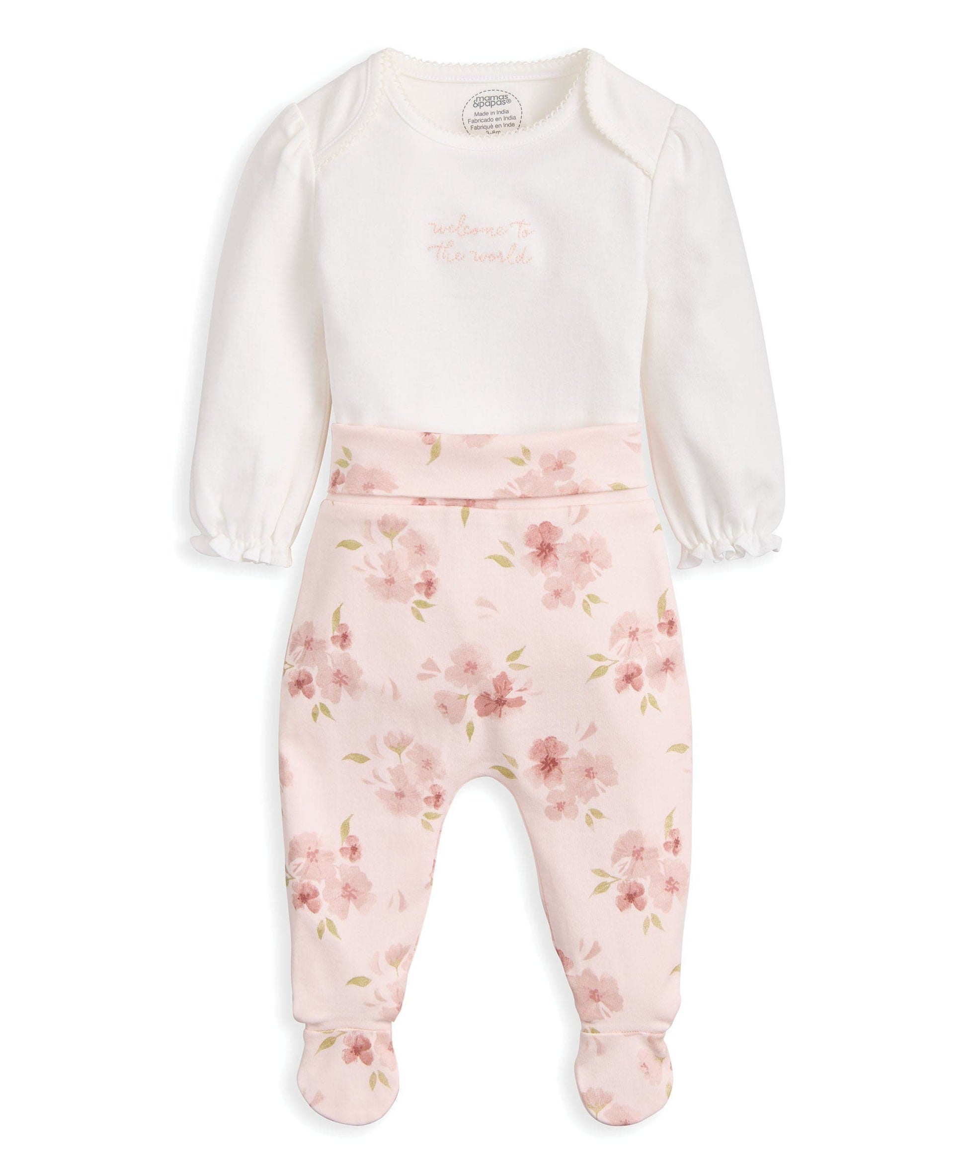 - Coordinating watercolour floral print leggings with turn-back waist