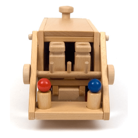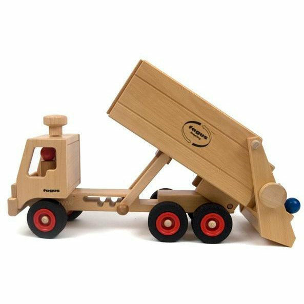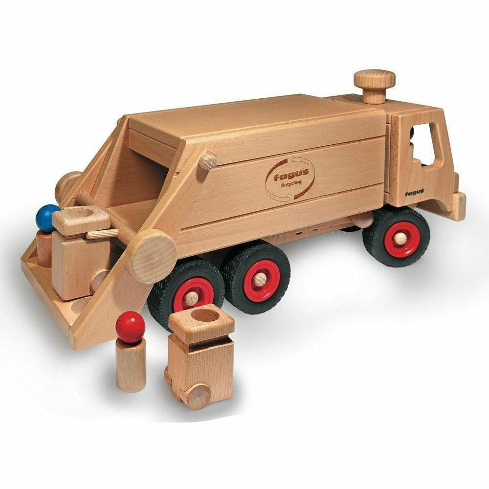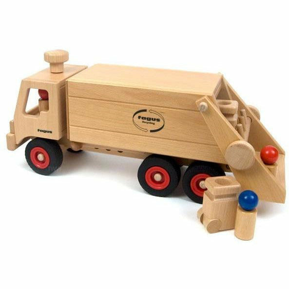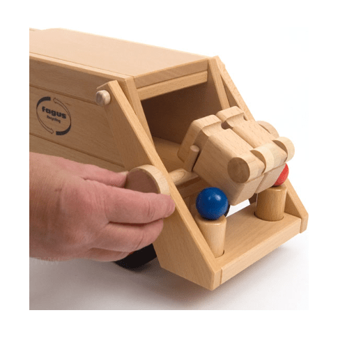The wonderful wooden cars and trucks by Fagus are made of beech wood (the Latin word fagus=beech) in a workshop for the handicapped. The toys, made without nails, screws and staples, are interlocked, doweled and glued together.
