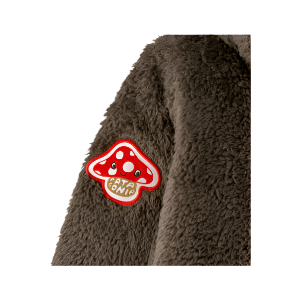 - One-piece cozy bunting made of 100% recycled polyester high-pile fleece