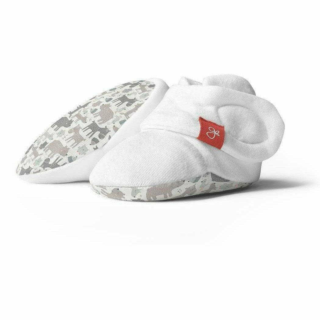 A signature two-part closure system remains secure to keep baby’s feet warm and adjusts to fit as baby grows. They are cool in the summer, warm in the winter