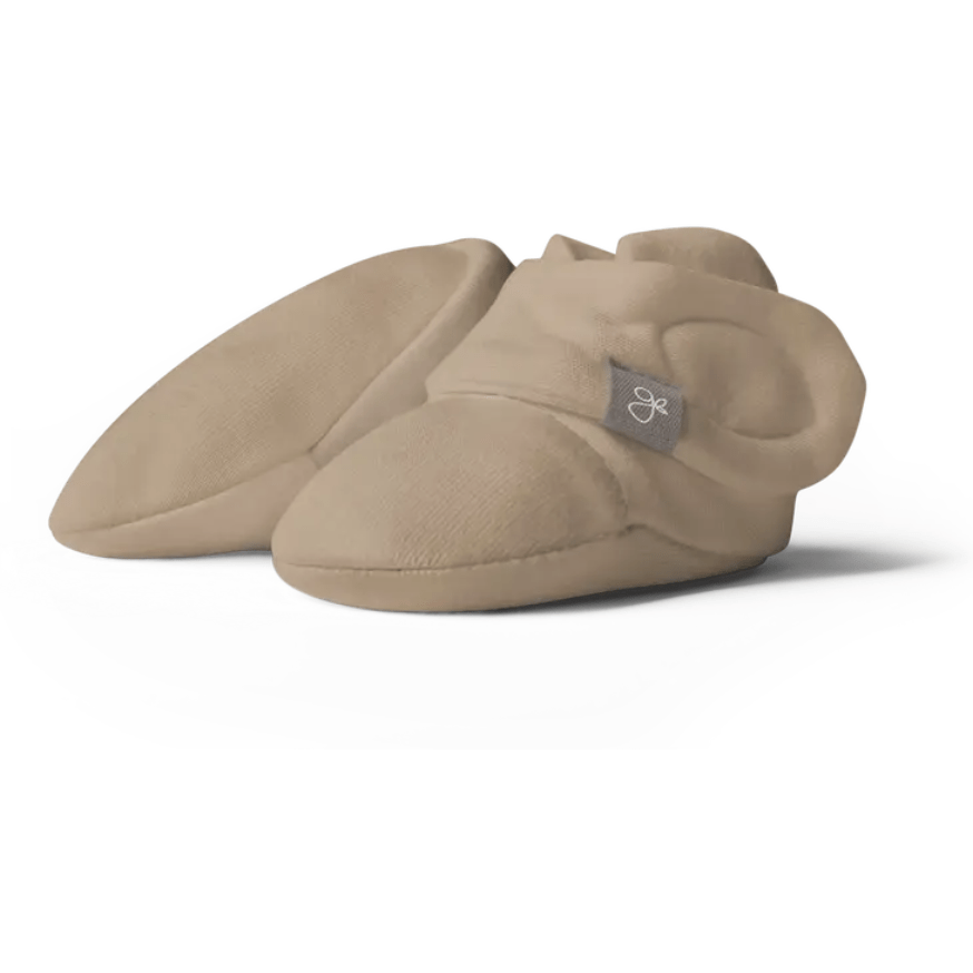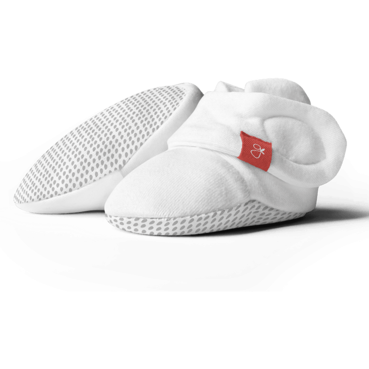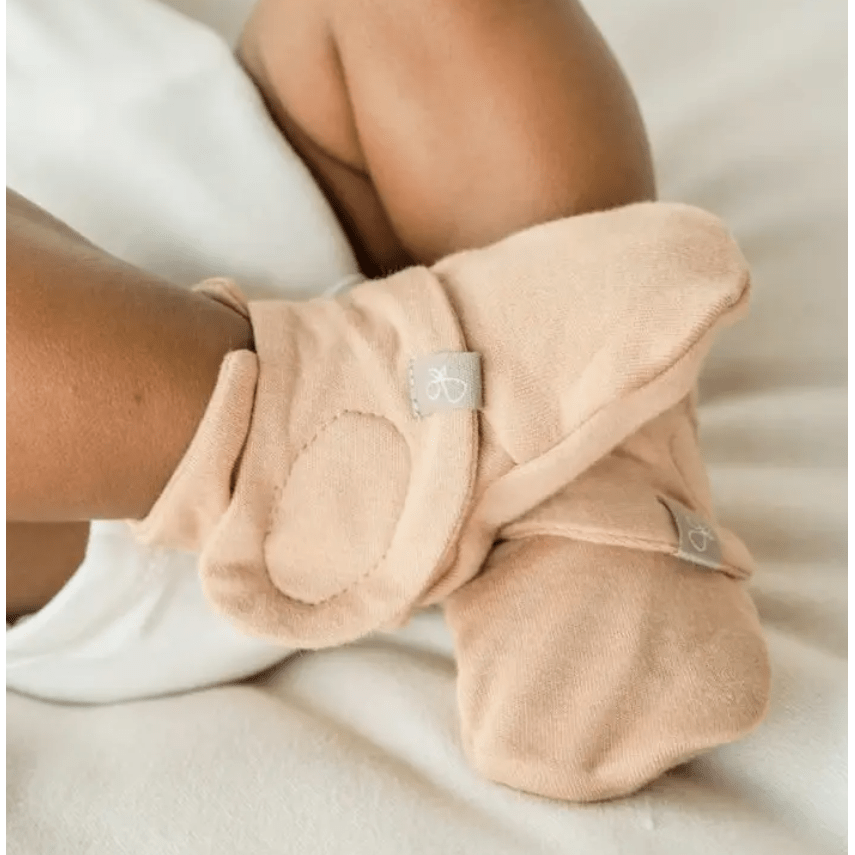 A signature two-part closure system remains secure to keep baby’s feet warm and adjusts to fit as baby grows. They are cool in the summer, warm in the winter