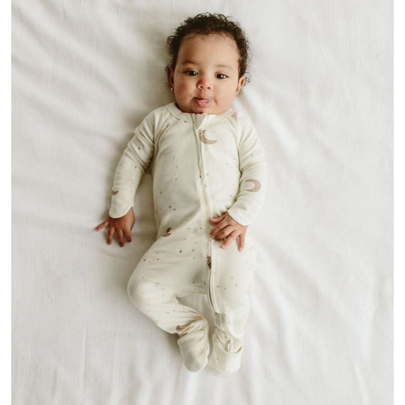 A thoughtfully-designed, organic footie pajama that is versatile, breathable, and SUPER soft.