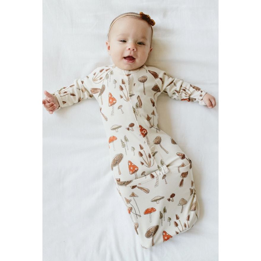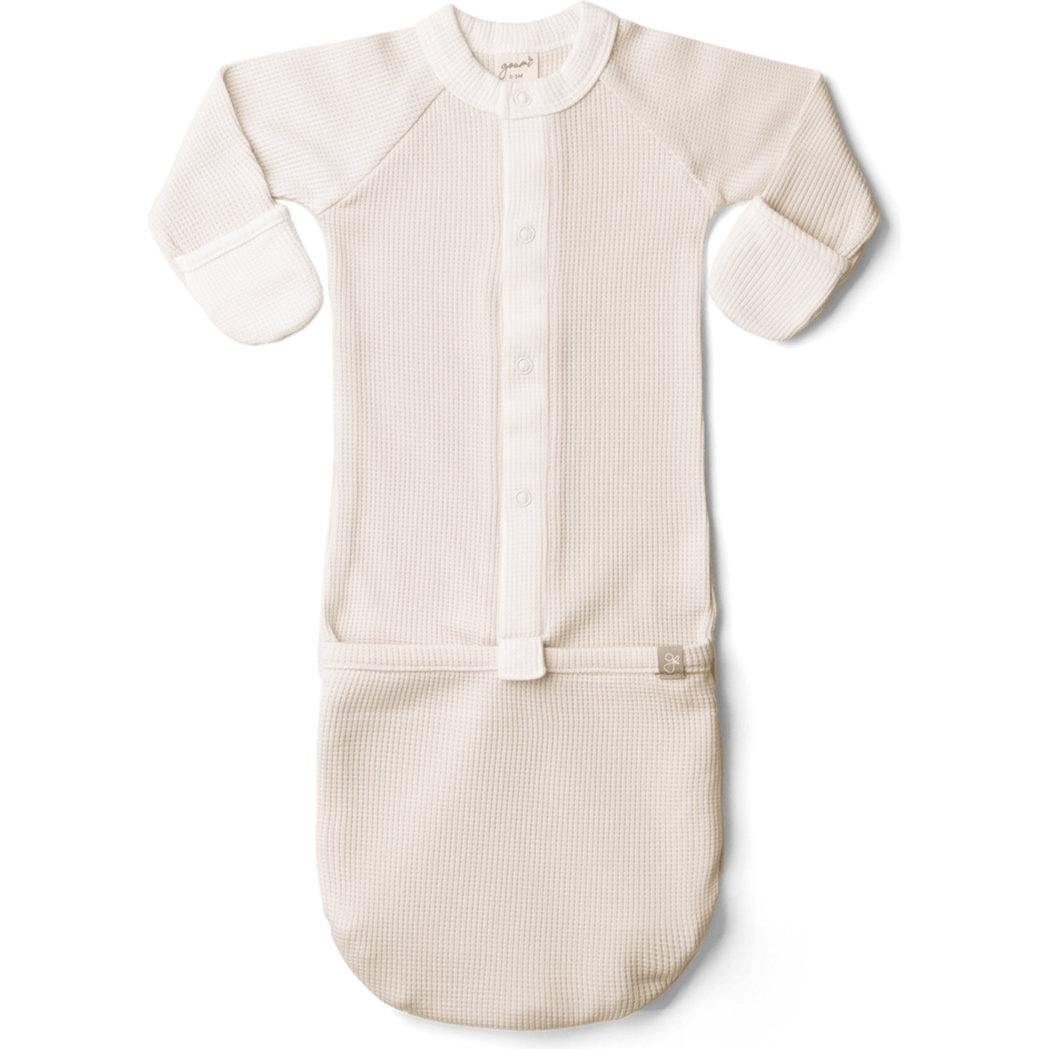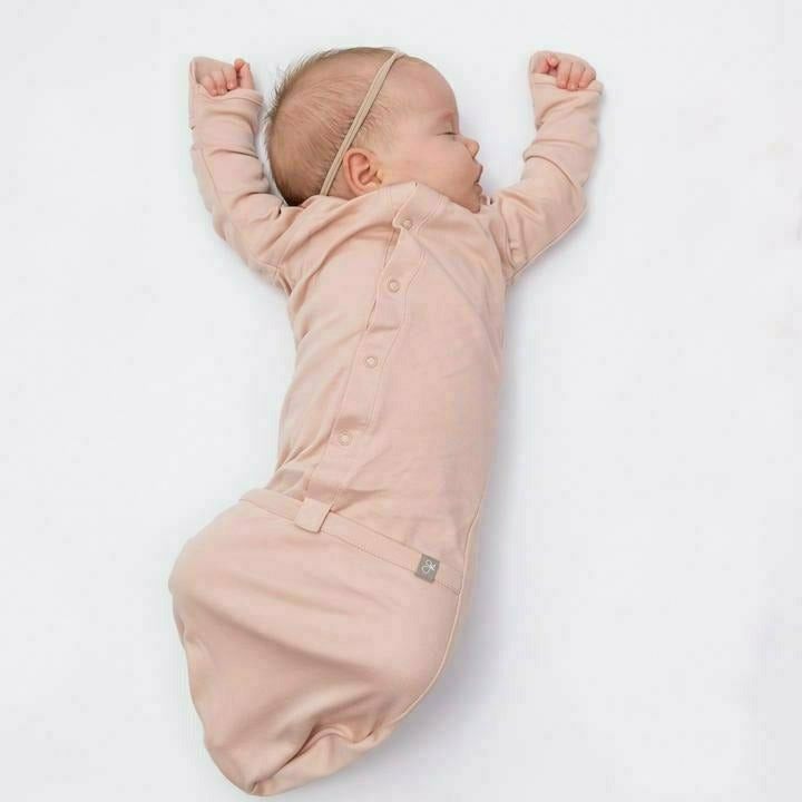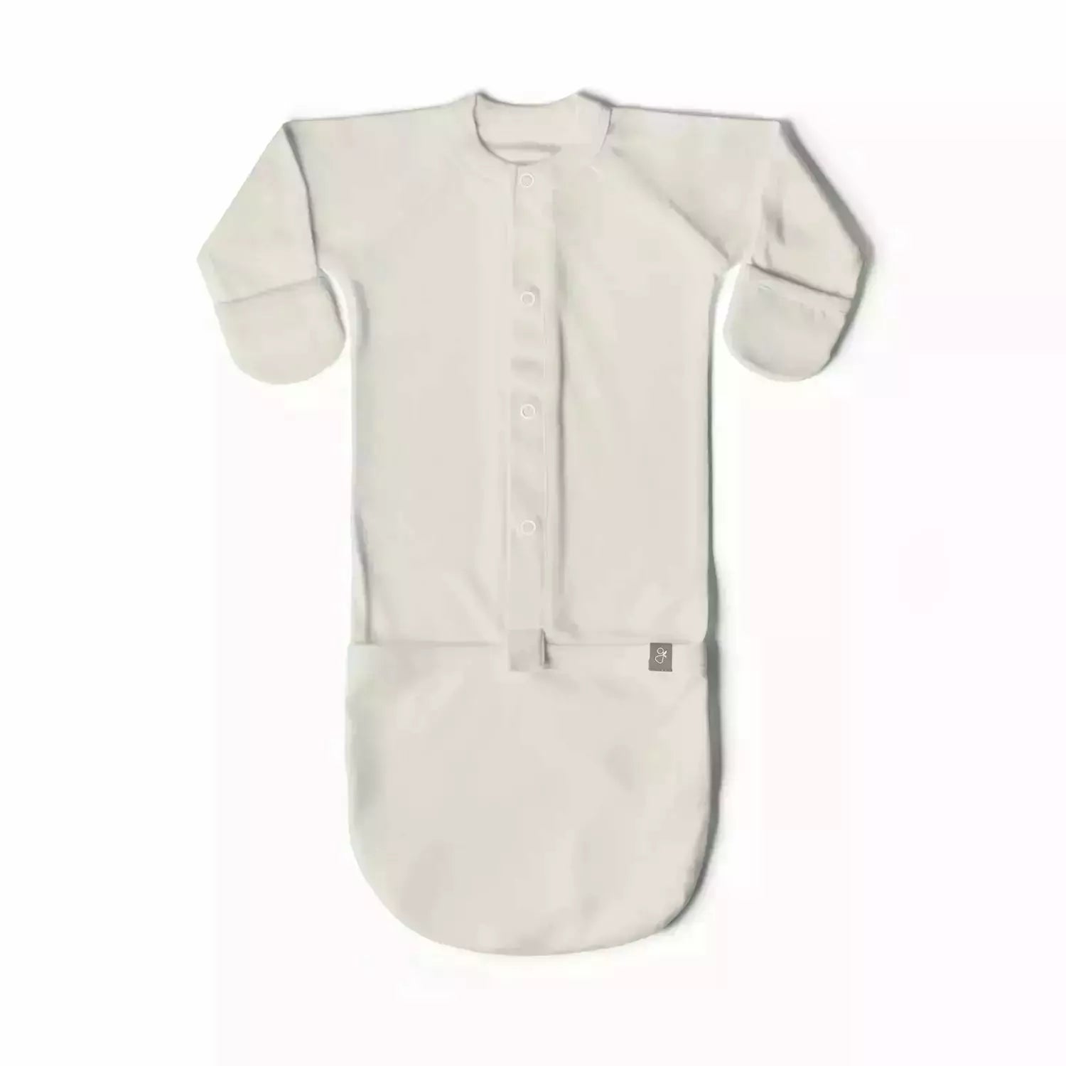 The best organic sleeper for diaper changes complete with built-in mitts, one-snap foot pocket, and SUPER soft, breathable fabric. Converts with a flip, with our patent-pending bottom pocket, quickly change from gown to sleeper and makes diaper changes a snap.