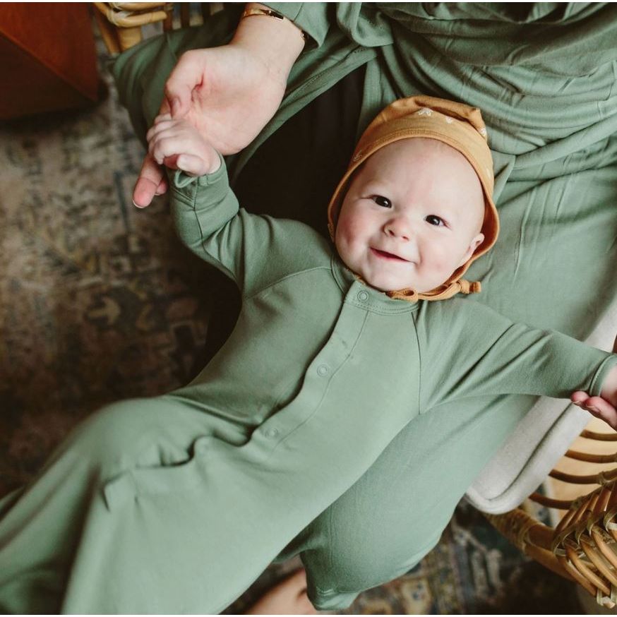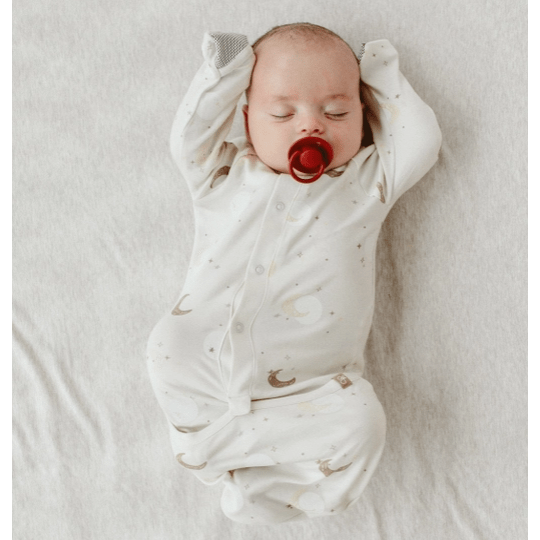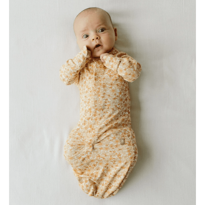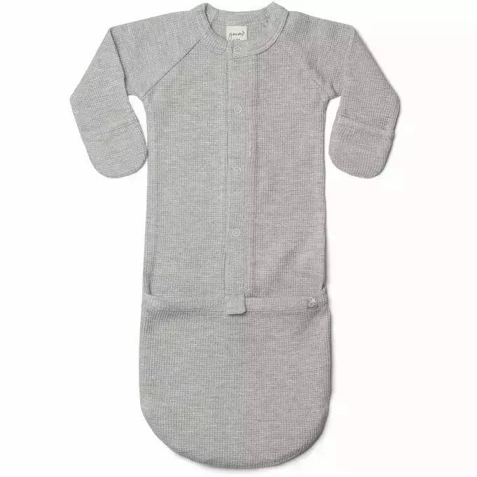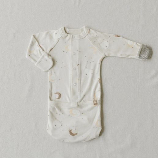 The best organic sleeper for diaper changes complete with built-in mitts, one-snap foot pocket, and SUPER soft, breathable fabric. Converts with a flip, with our patent-pending bottom pocket, quickly change from gown to sleeper and makes diaper changes a snap.
