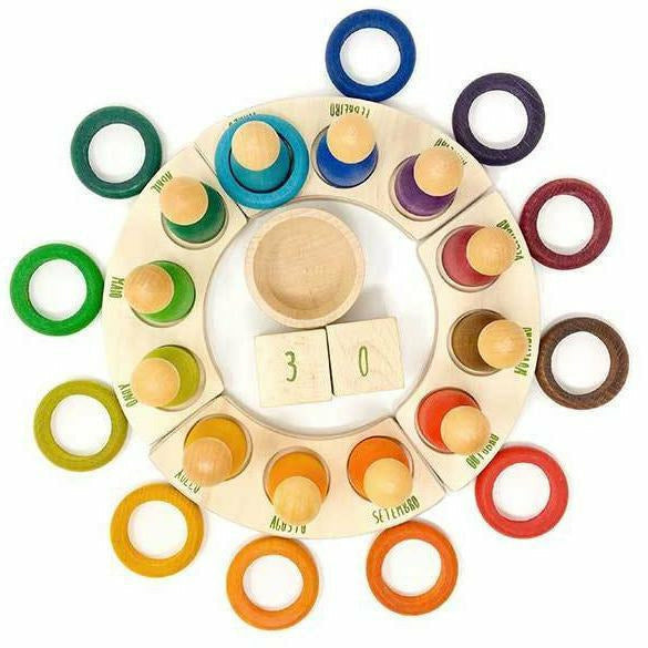 12 wooden rings that allow marking the current month with the color determined according to the Waldorf pedagogy.