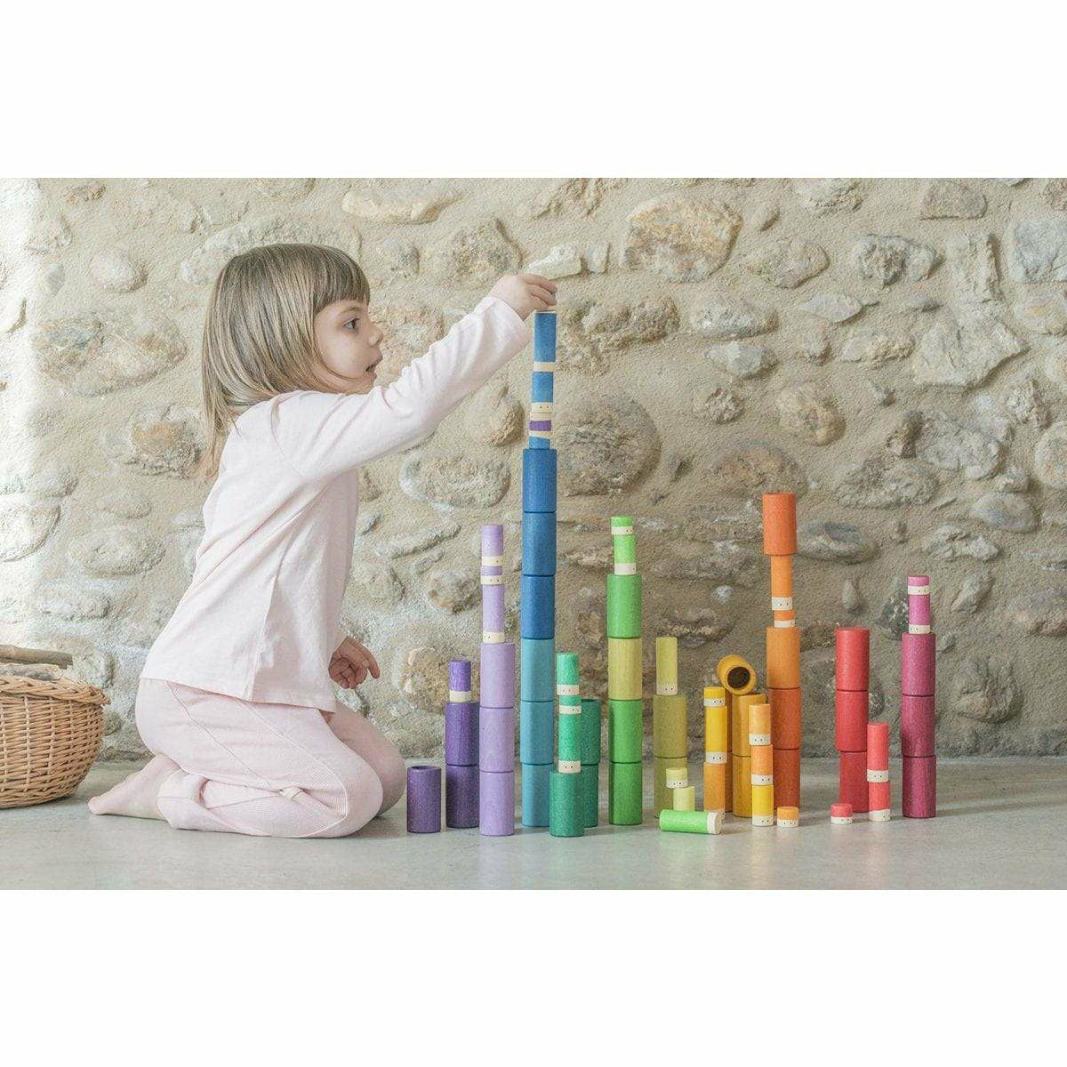 A wonderfully imaginative collection with endless play possibilities, this features 36 charming Lola figures in 12 colors and 3 sizes, along with beakers and solid and hollow tubes in matching tones. Stack them, sort them by size or color, or just unleash your imagination and play!