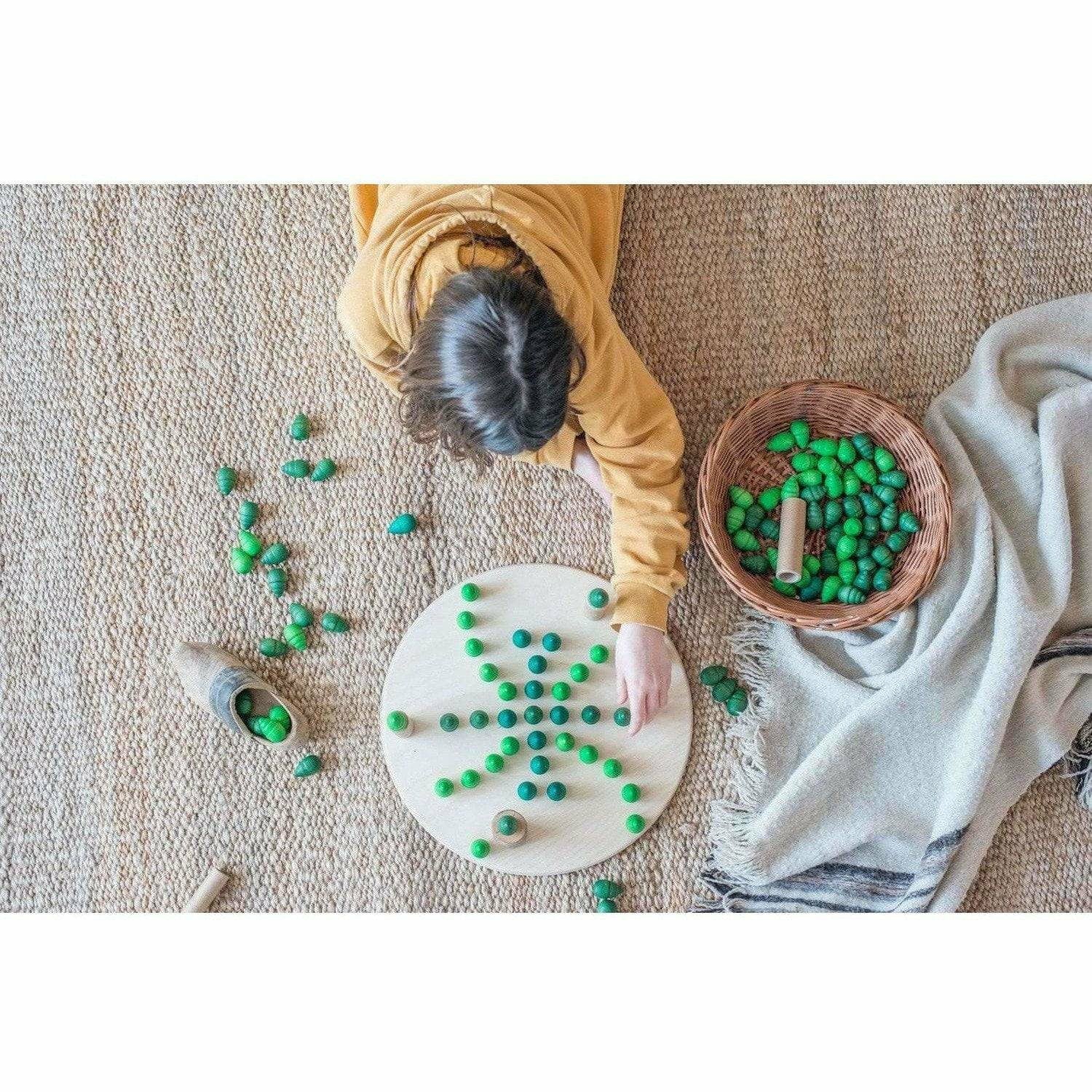 Thirty-six wood trees in graduated green tones. Lay them out in patterns on their own, or add them to the other Grapat mandala components for spectacular results!