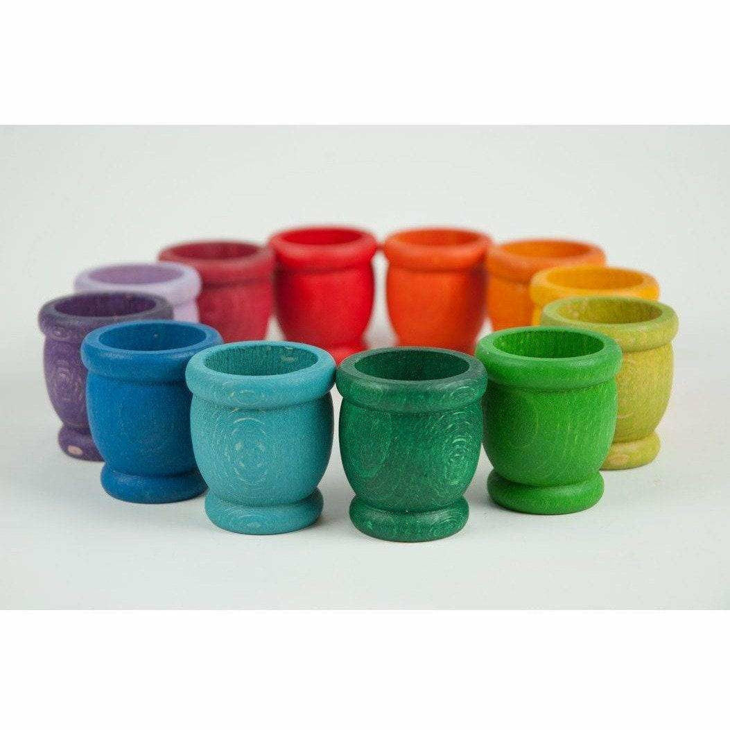 The 12 "mates" painted in 12 rainbow colors can be a perfect complement to the other Grapat stacking and matching toys. Children can use them to learn colors, for matching and sorting, or just as a backdrop for play!