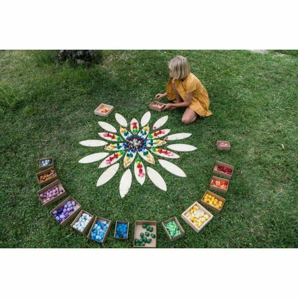 The perfect play platform for your nature-inspired designs, the Petals can be combined with the mandala sets or incorporated into your buildings. 24 petals of toxin-free plywood.