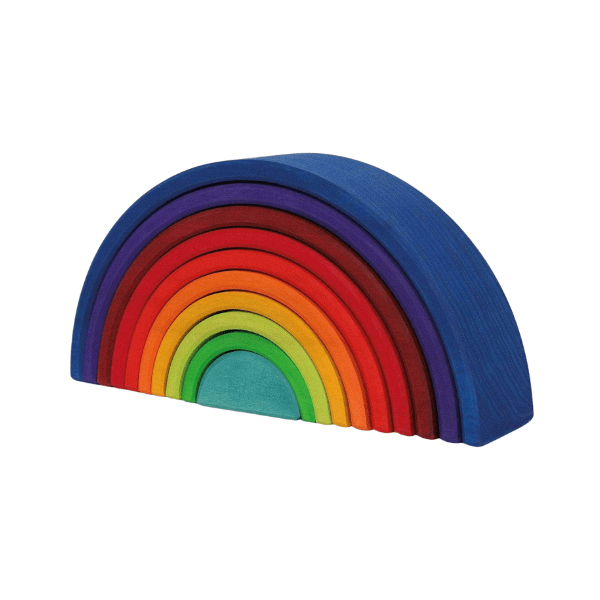 The 10-piece rainbow is part of the Grimm´s world of numbers, where games fit perfectly together. Children can discover the more abstract world of numbers in many different ways by playing and by simply using their different senses.
