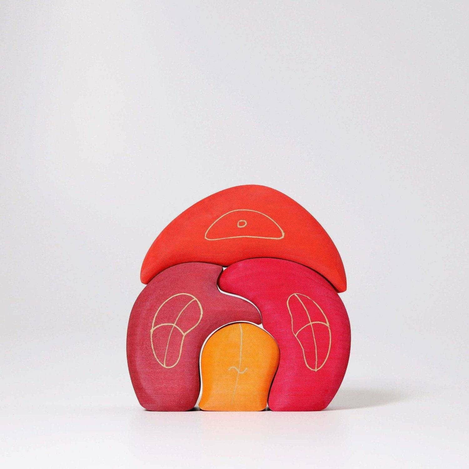 Grimm's loves wood because it is a natural material so it always has various markings that show up in their products, making each one unique. Grimm’s toys are always one of a kind, carrying unique marks made by nature. Wood grain has changing structures and colors which serve as proof of its natural origins. The unique variations are proof of quality, not defects. Discover the markings that make your Grimm’s toy Simply Unique!
