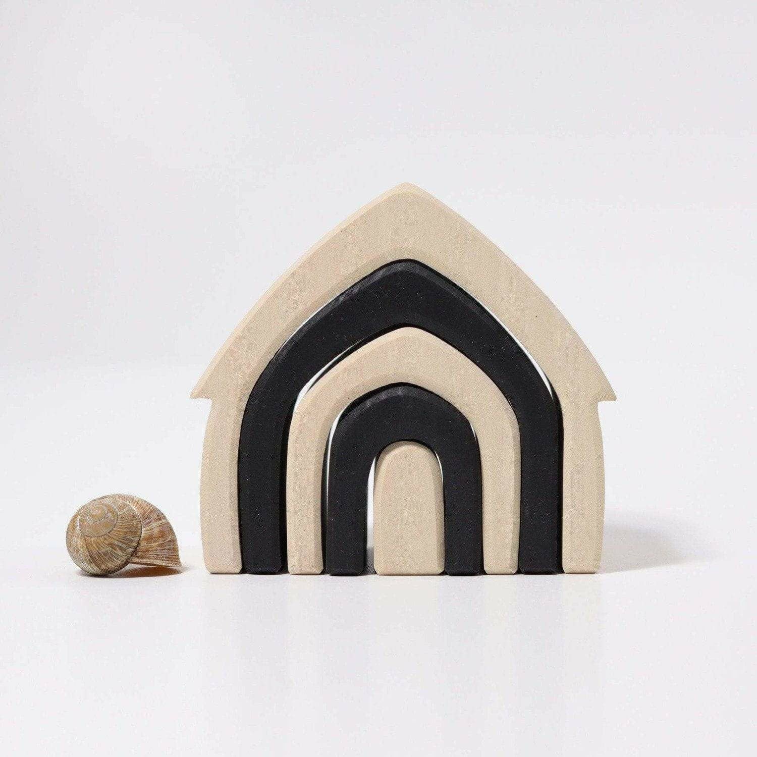 This stacking toy House is really versatile and ideal already for small children! Toddlers stack, sort and build and as the children get older they will use it as house for dwarfs and dollhouse dolls, for building towers, as fence for animals, like a tunnel for vehicles... this toy will always be integrated in playing with a lot of fantasy. 5 pieces.