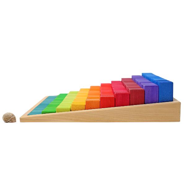 Besides endless ways for building simple foundations, walls, fences, stalls as well as houses, towers and castles, these blocks are an exciting way for children to discover the world of numbers and learn the colour sequence of the rainbow! Through tactile touch, each number can be counted by feeling with the hands.