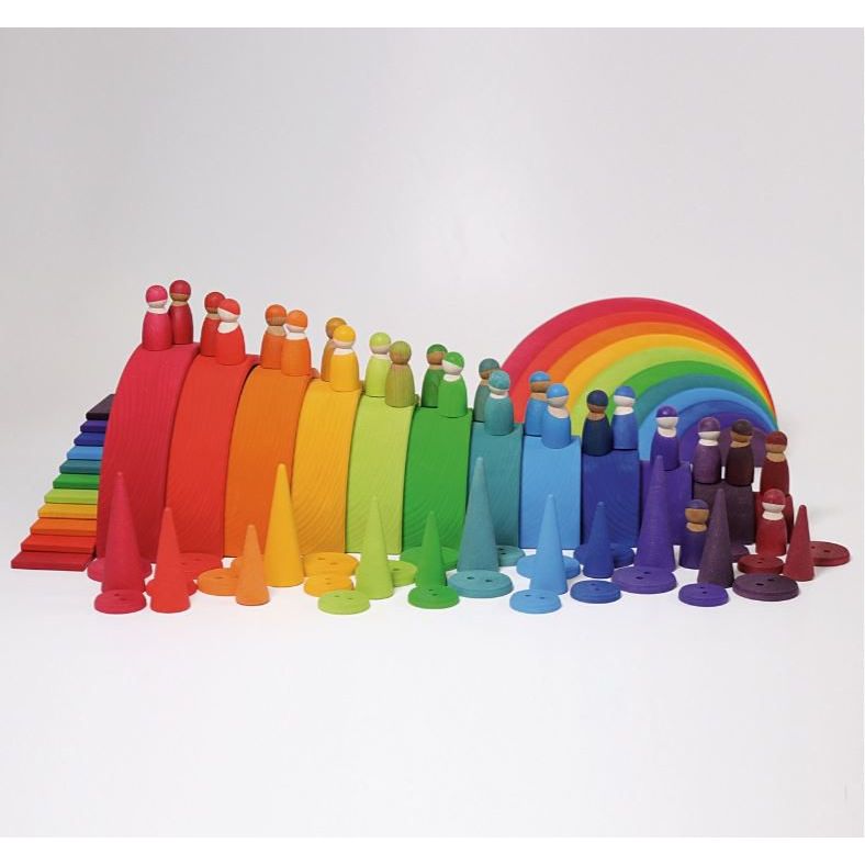 A threading game that is also ideal for building and sorting colors. Perfect in combination with: 12 Friends (Art. No 10581), Rainbow (10670) and Rainbow Forest (10165).
