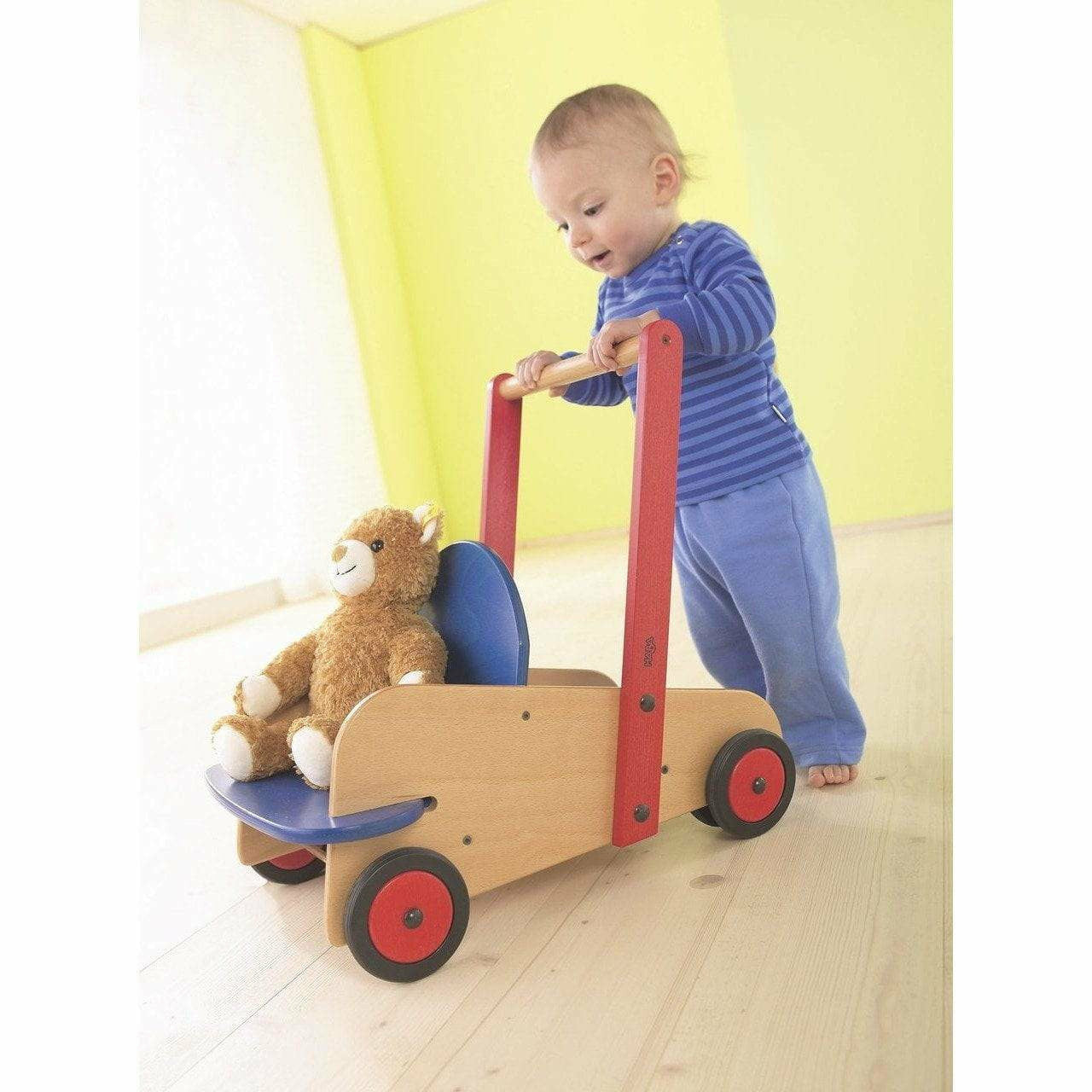 Aids children taking their first steps and doubles as a doll pram/stroller. The seat allows brother or sister to ride along.