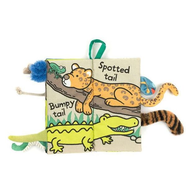 Jungly Tails Book allows little ones to explore the different tails of their favorite jungle Jellycats. An adorable touch-and-feel cloth book with bold colors and images, this book is a tactile exploration of which tail belongs to which textured jungle friend.
