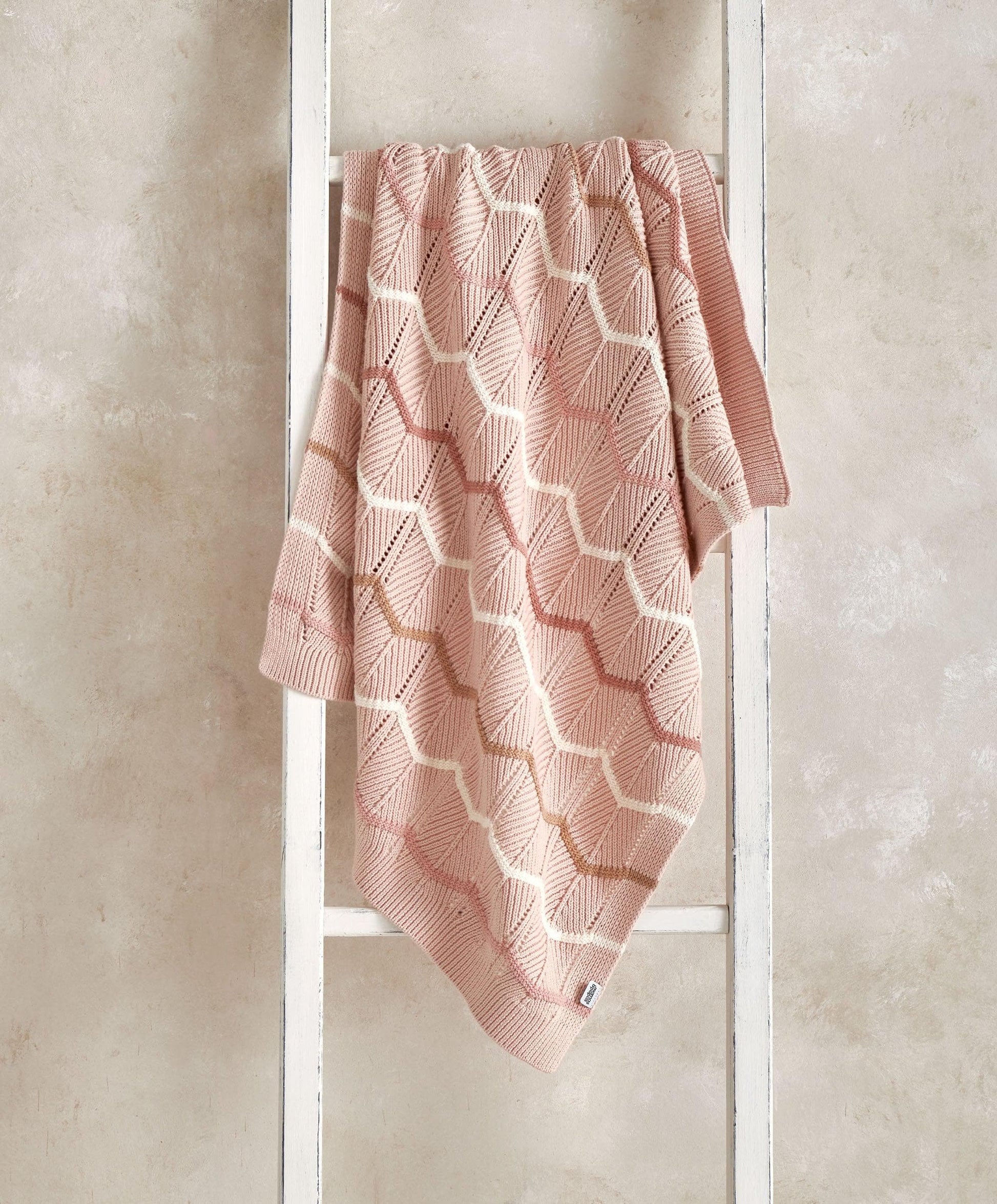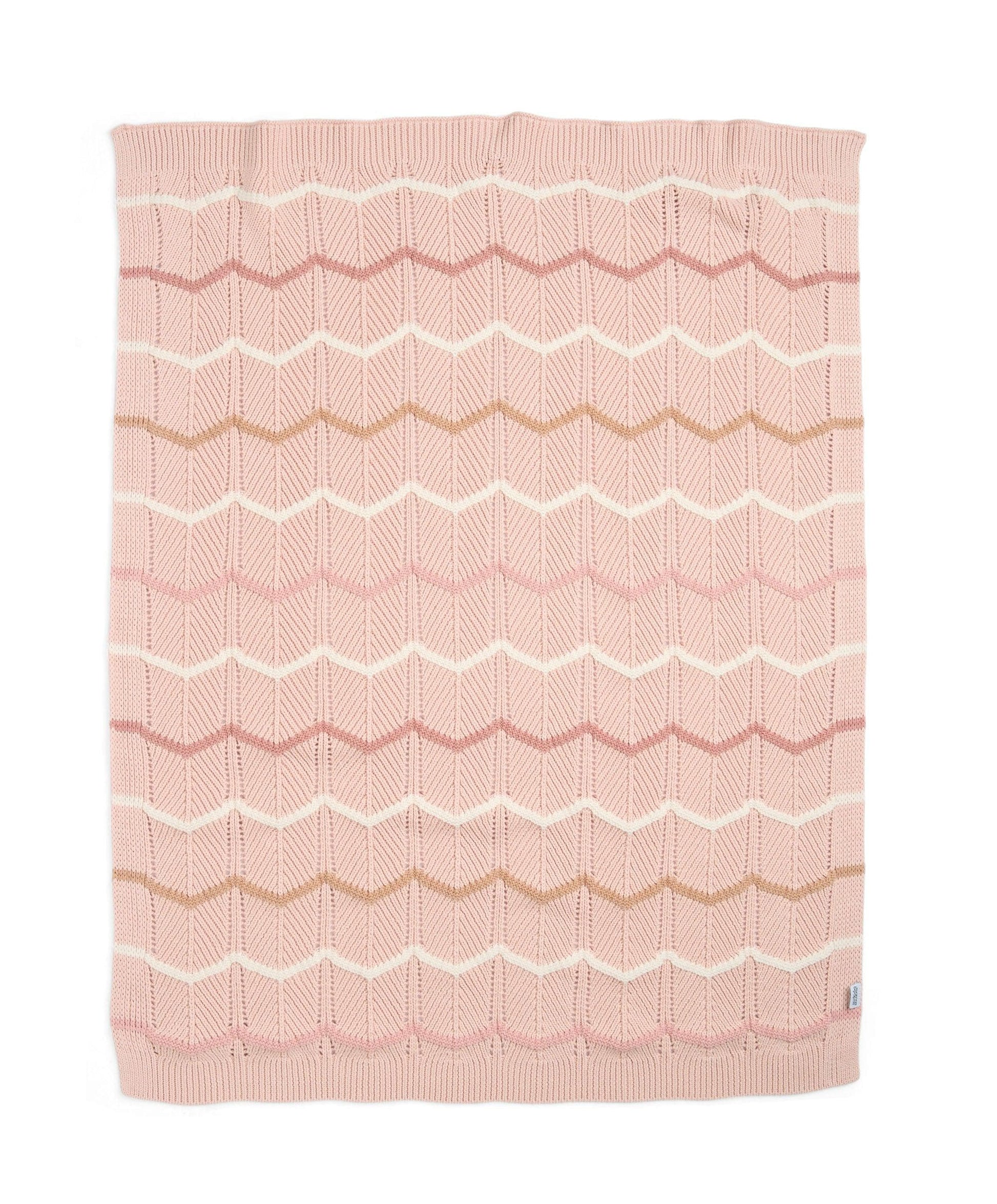 Pretty pink, soft knitted blanket featuring a contemporary wave design, made from 100% cotton. Machine washable.