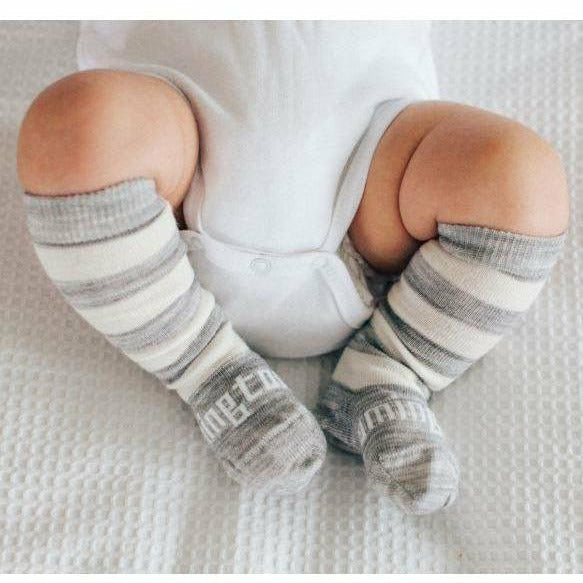 Lamington knee high socks are designed to be worn below the knee, babies skin is so delicate and sensitive, we do not ever endorse pulling over the knee.