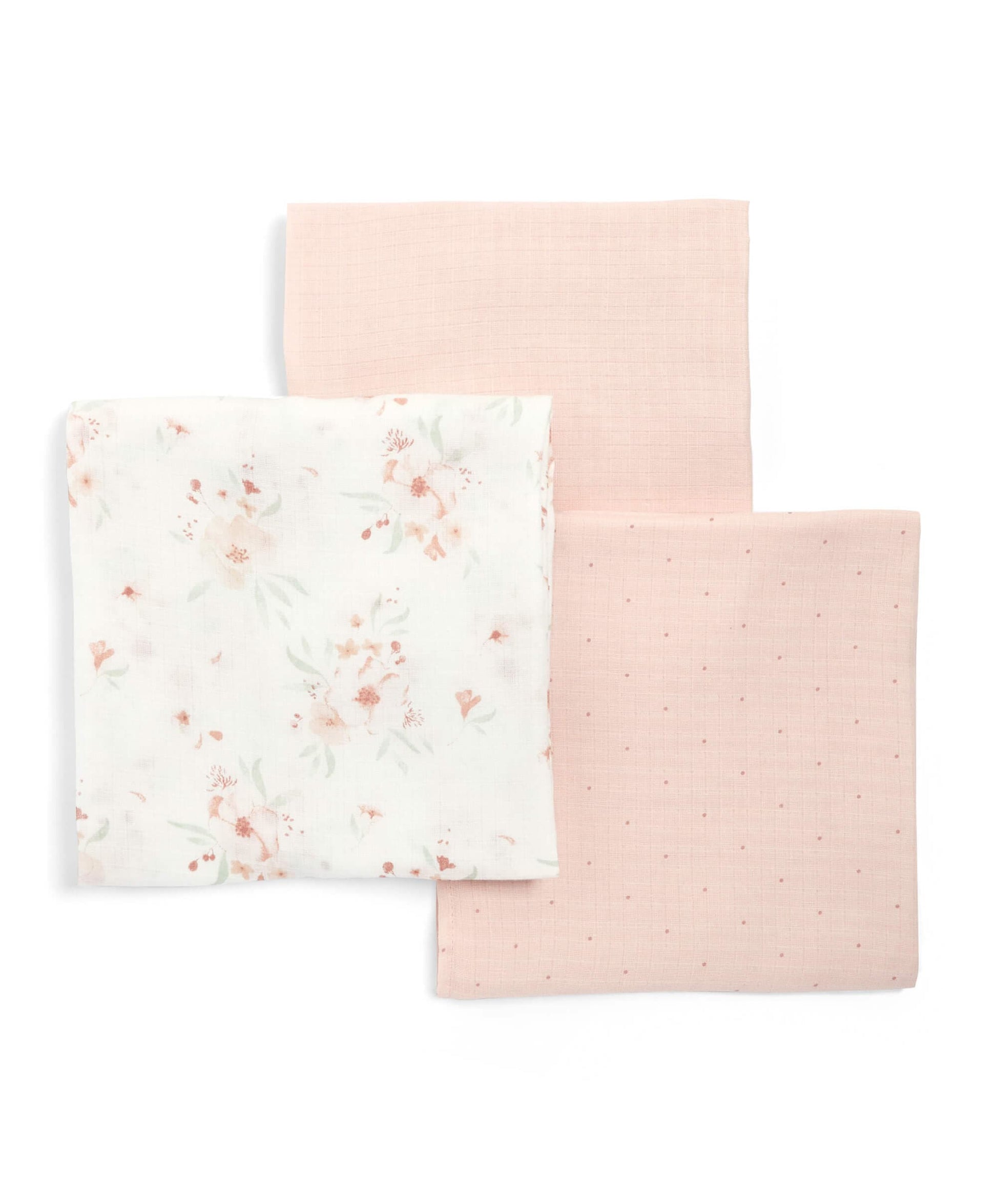 Handy 3-pack of muslin squares, perfect for mopping up spills on your little one or yourself! Crafted from super soft cotton. Contains different prints, including floral and spots.
