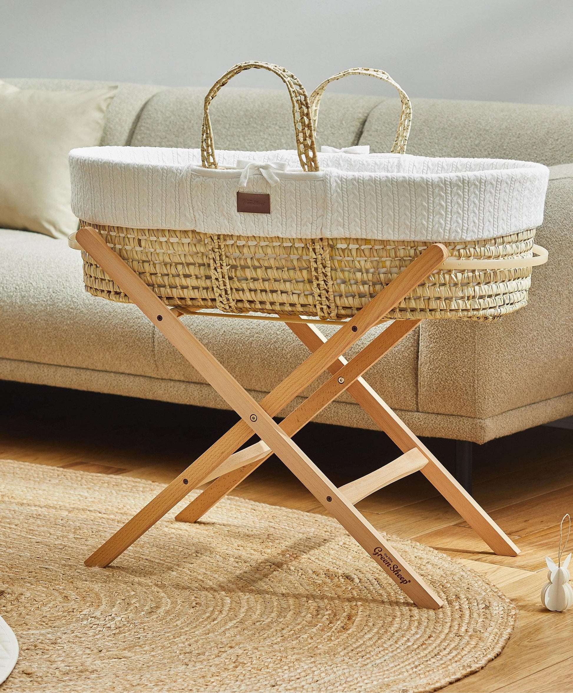 Create the most natural sleeping environment from day one with this stunning knitted Moses basket, part of our With Love collection. Complete with a luxurious chemical-free Little Green Sheep mattress.